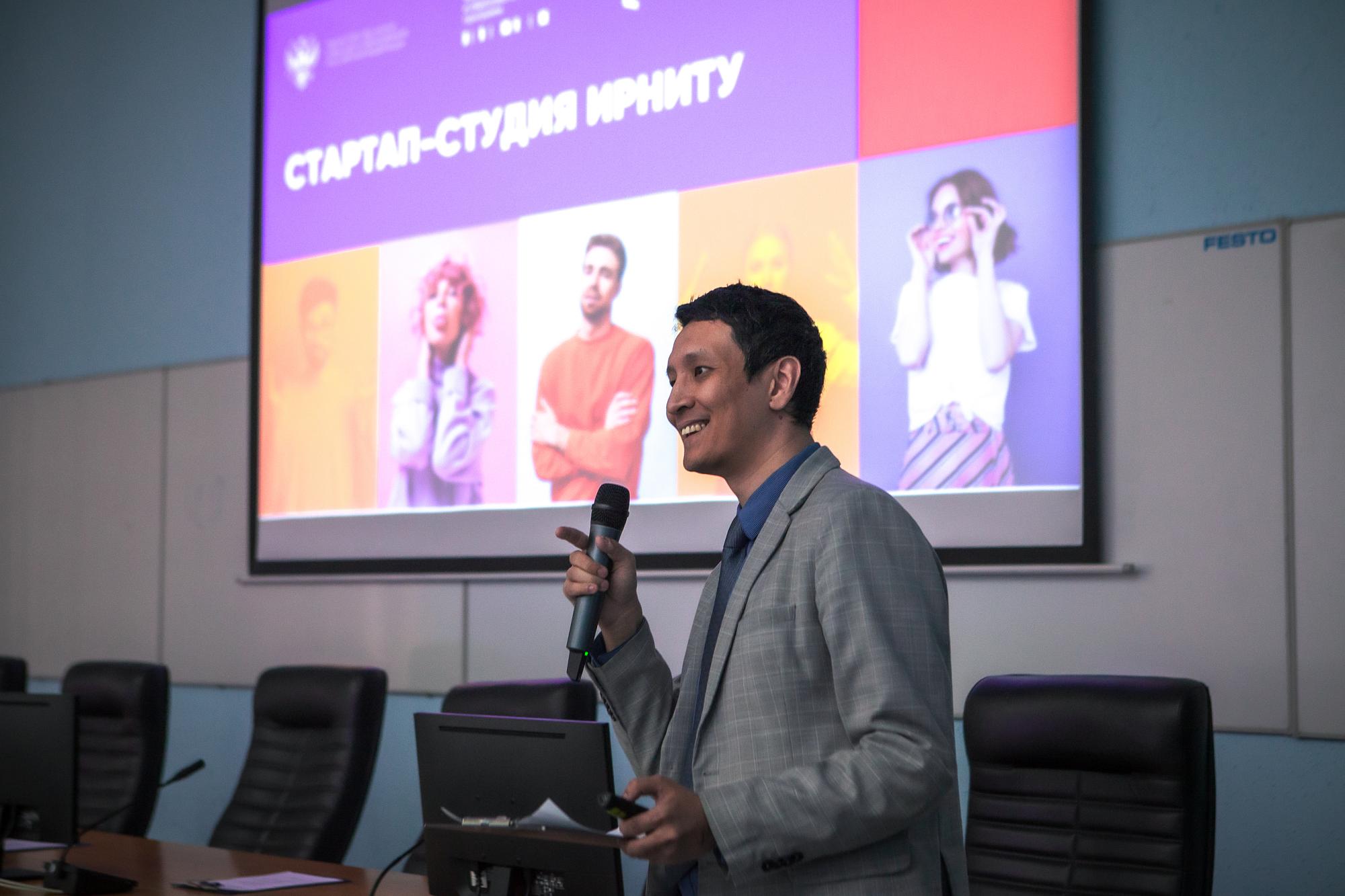 Лекторий продолжили сотрудники ИРНИТУ. Заместитель начальника Управления по молодёжной политике Дарья Рулёва выступила с презентацией о возможностях, которые предоставляет университет для развития технологических проектов. Она рассказала о программах «PROПредпринимательство», «Стартап как диплом», «Лаборатория энергетики», хакатоне «Байкал без пластика». К ней присоединился Рустам Кириллов, обозначивший достижения «Стартап-студии» Иркутского политеха.