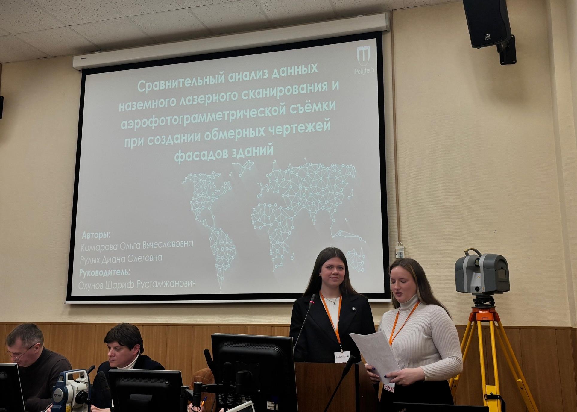Мария Гадалова заняла второе место на студенческой конференции. Она выступала на заседании секции, посвященной ГЛОНАСС, роботизированным системам, лазерному сканированию. Студентка выступила с докладом, целью которого было проведение геодезического мониторинга перекрытий большепролетных сооружений. Как отметила Мария, данный мониторинг необходим для выявления смещения балочной конструкции при помощи тахеометрической съёмки и лазерного сканирования.