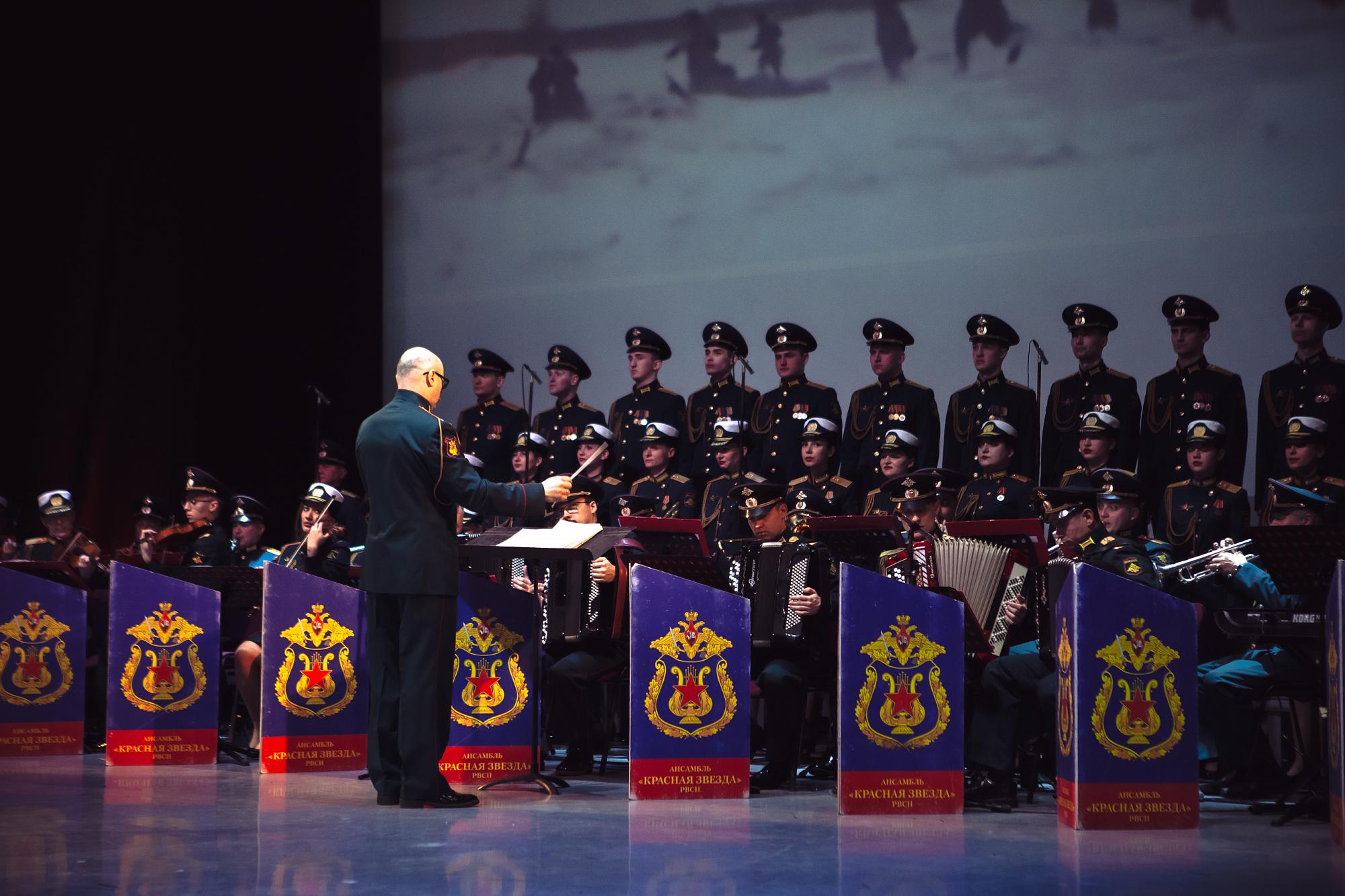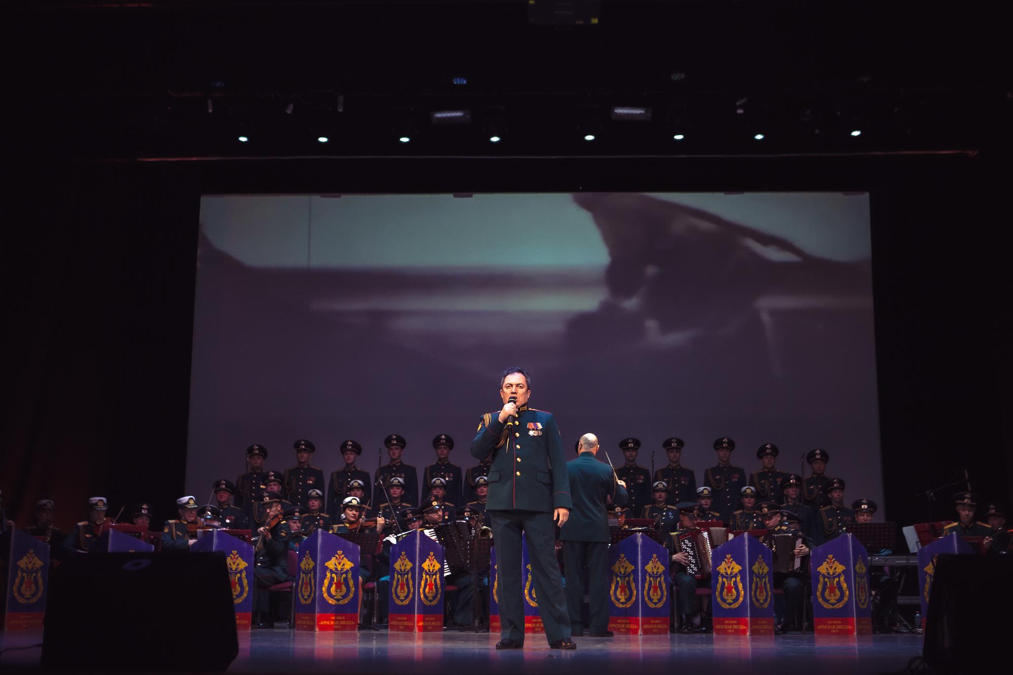 История ансамбля началась почти полвека назад. Впервые «Красная звезда» дала концерт 22 февраля 1978 года. В репертуаре коллектива — военная музыка, песни советских и российских композиторов, народные песни и танцы, произведения композиторов-классиков и шедевры мировой поп-музыки. Руководит ансамблем главный дирижёр майор Антон Жевняк.