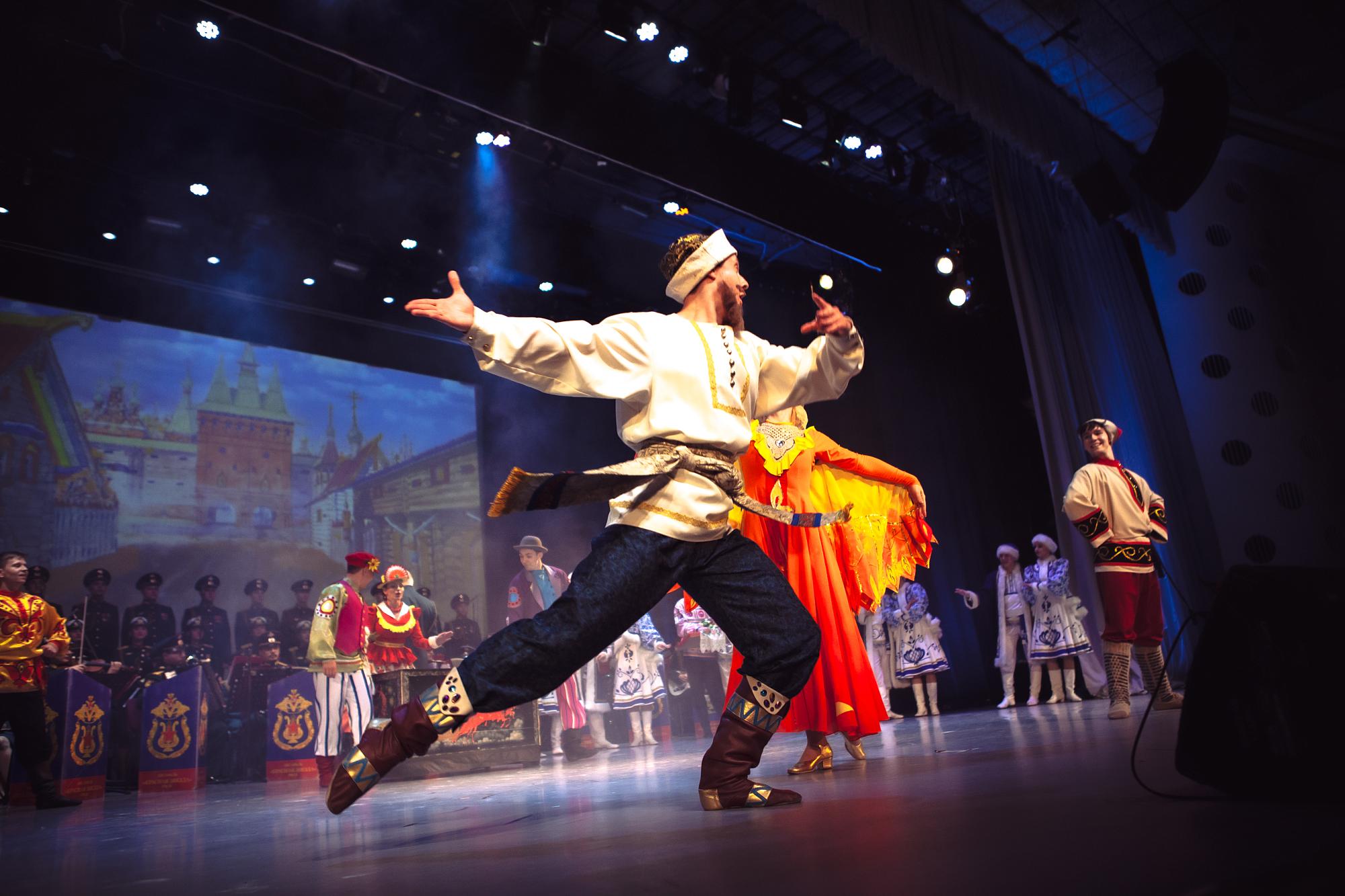 Со сцены прозвучали шлягер «А я иду, шагаю по Москве», попурри из «Катюши», «Смуглянки», «Песенки фронтового шофера», а также казачьи песни. Зрители аплодировали не только вокальным данным, но и артистизму, виртуозным танцам вприсядку — с прыжками и вертушками.