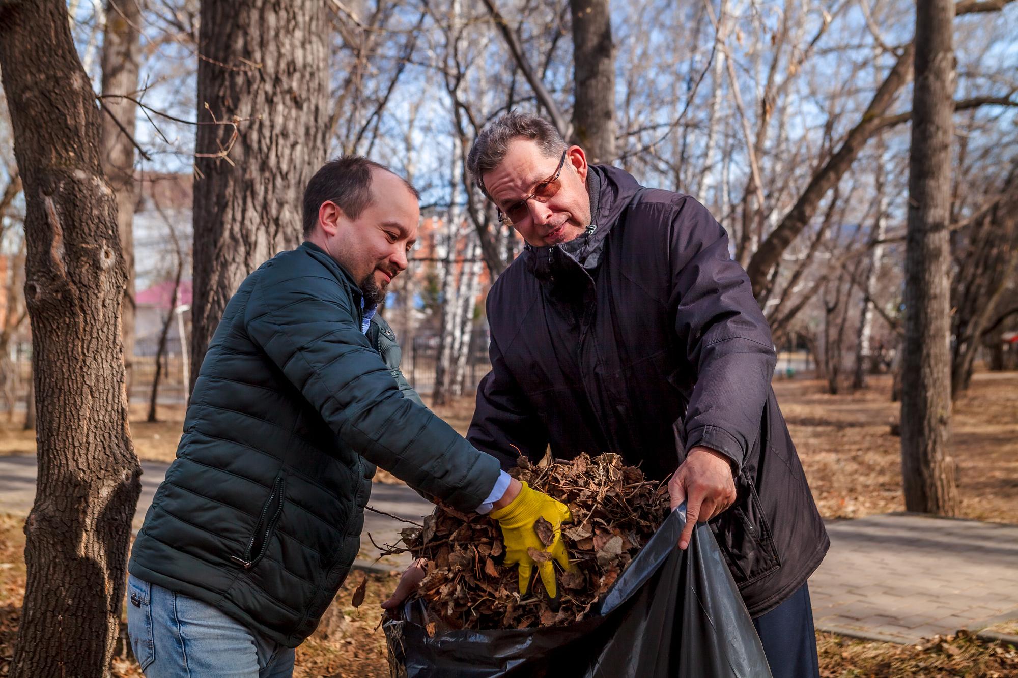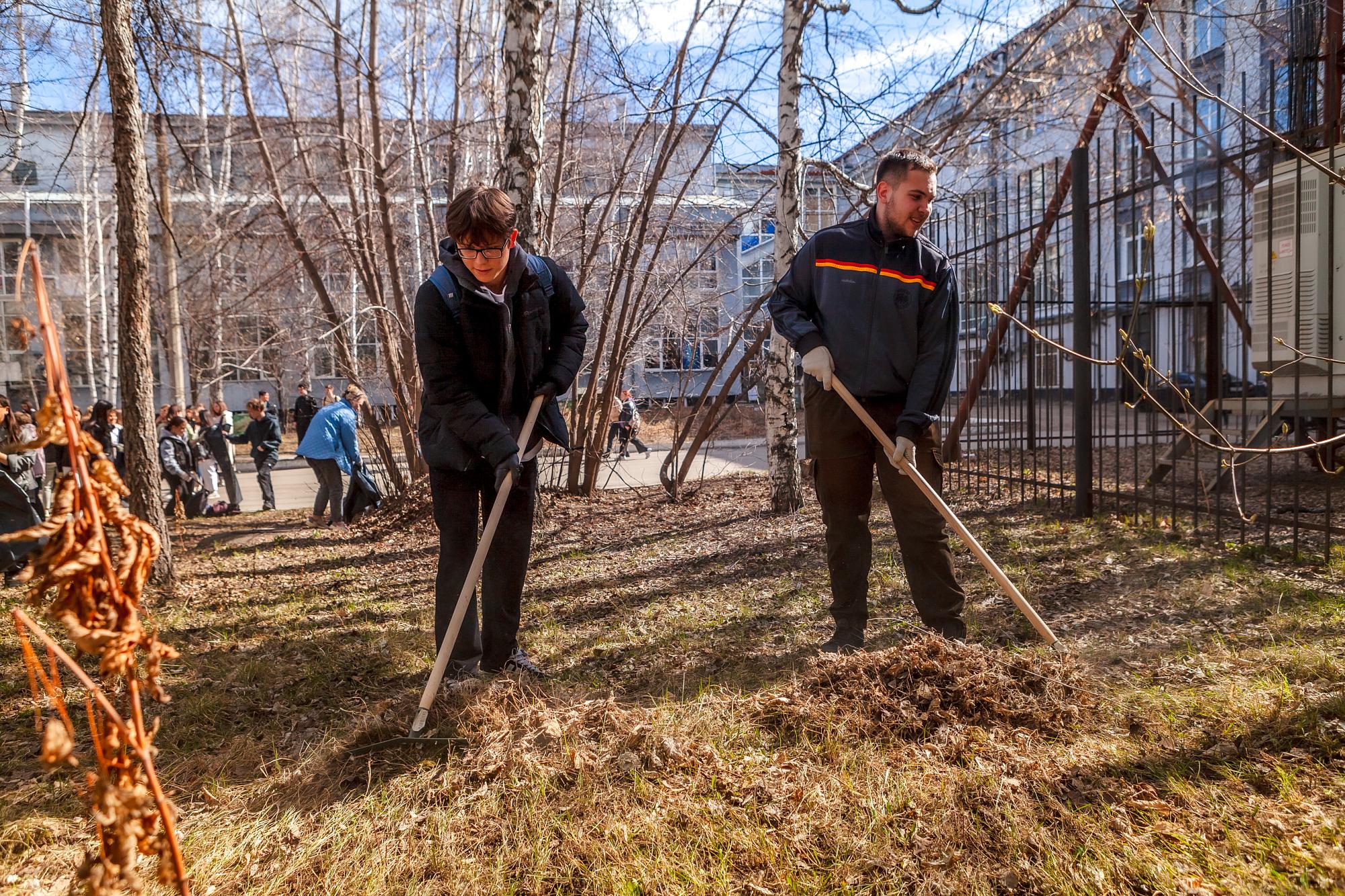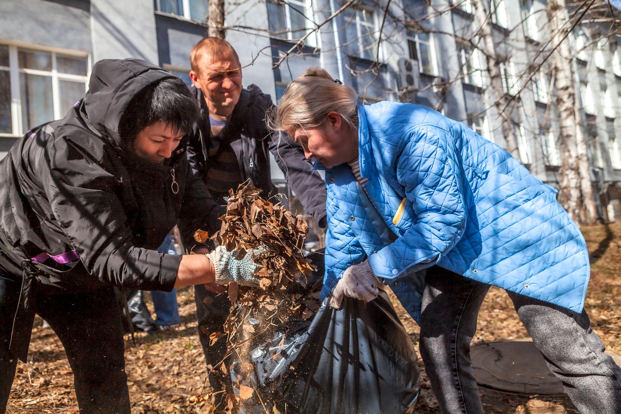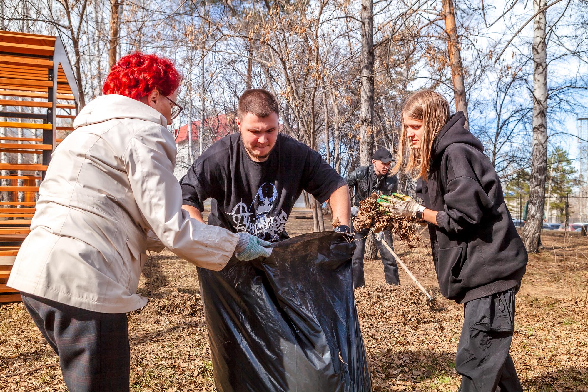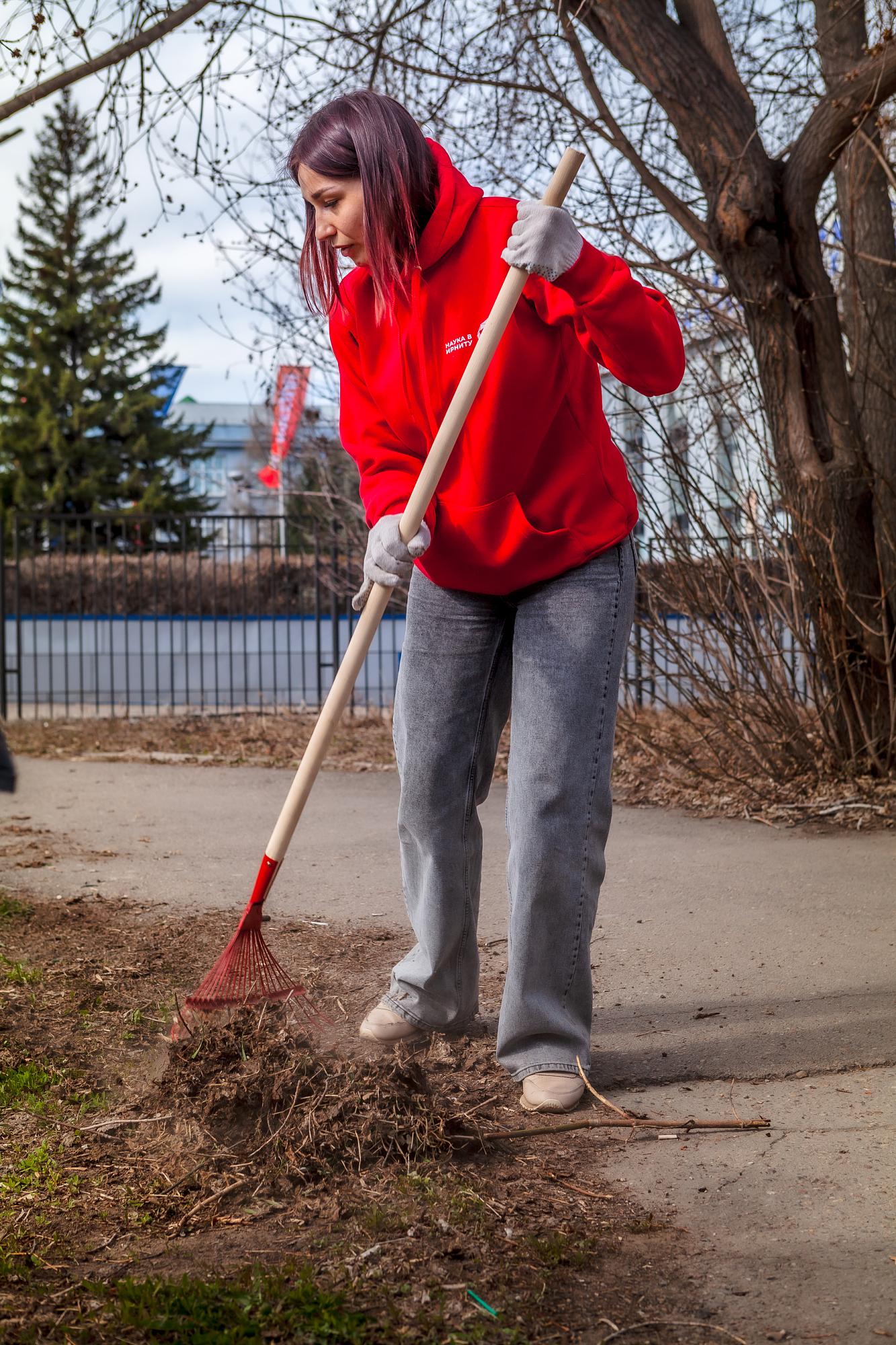 Участникам акции выдали необходимый инвентарь: перчатки, грабли и мешки для сбора мусора. За каждым институтом была закреплена территория. Администрация вуза отвечала за уборку возле корпусов «И» и «Д». Студенты Машиностроительного колледжа, Геологоразведочного техникума и Сибирской школы геонаук трудились на своих площадках.