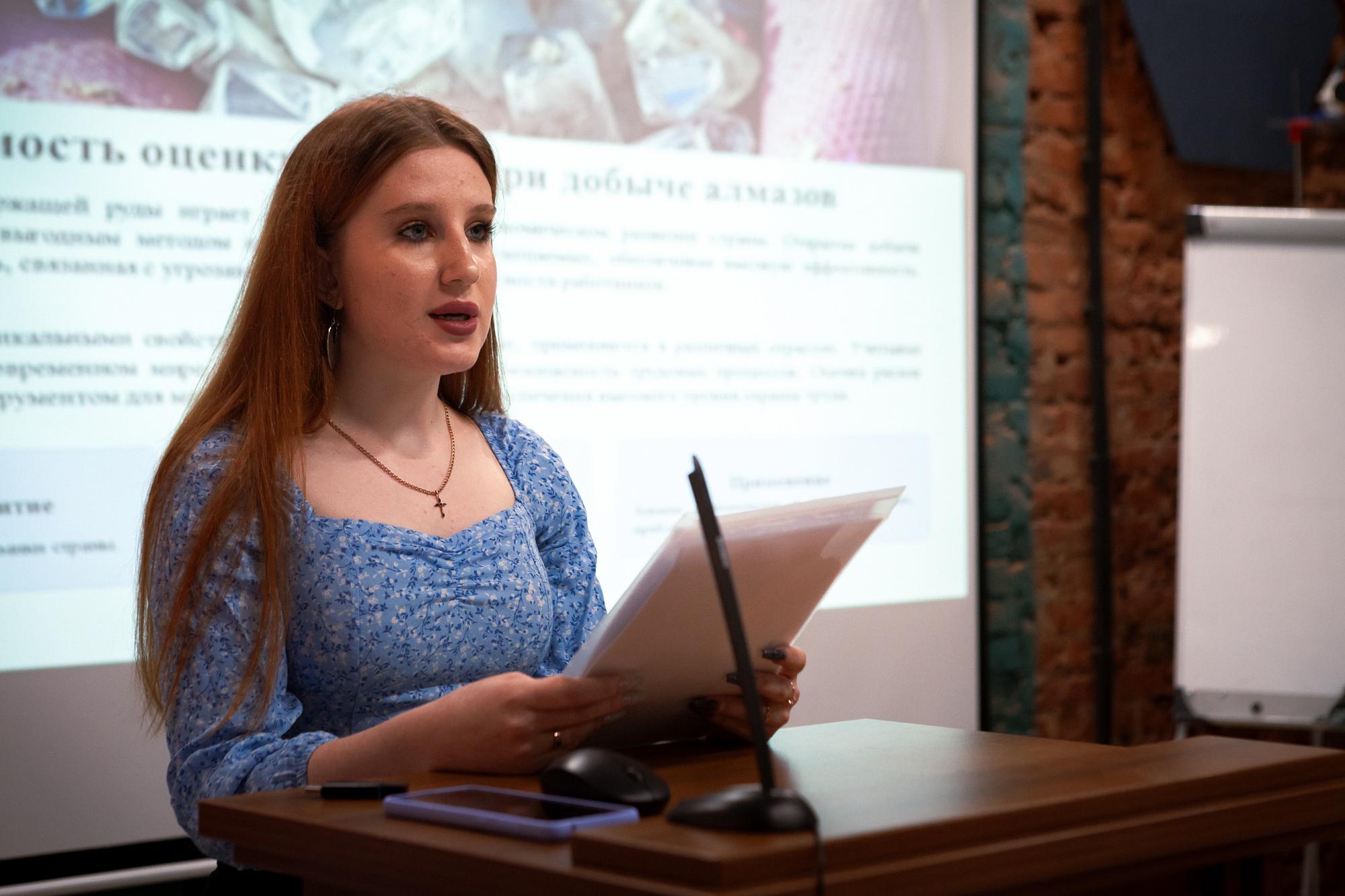 Анастасия Бокарева из ИРНИТУ она оценила риски при добыче алмазов открытым способом. Как показало исследование, самыми опасными на данном производстве являются добыча, дробление, сортировка и погрузка руды в самосвалы. Студентка разработала перечень мер для снижения рисков, включая установку защитных ограждений, применение современных технологий укреплений склона карьеров, использование шумопоглощающих материалов и конструкций.