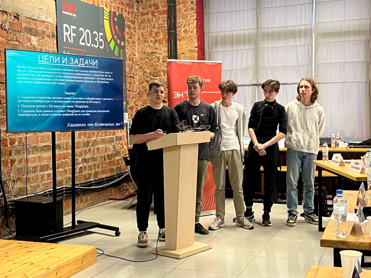 Победу в хакатоне одержала команда «КФК» в составе первокурсников ИРНИТУ Тиграна Антоняна, Екатерины Безносовой, Никиты Васильева, Виктории Никитеевой и Михаила Москвитина. Ребята разработали демоверсию системы считывания температурных параметров воды и масла дизельного тепловоза. Они предусмотрела передачу данных на удалённый сервер и телеграм-бот для сотрудников локомотивной бригады и диспетчеров.