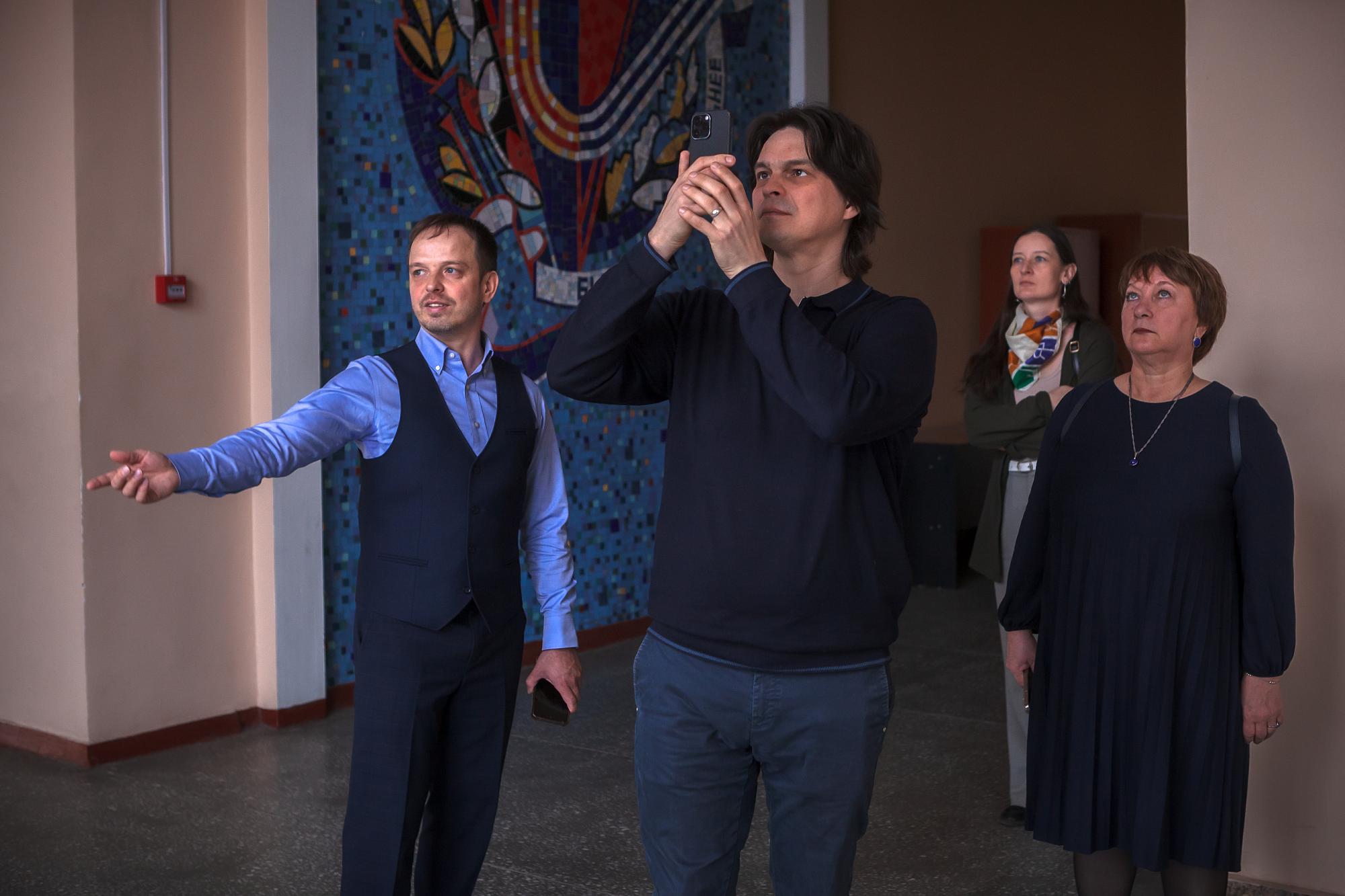 ИРНИТУ посетила делегация преподавателей Санкт-Петербургской академии художеств имени Ильи Репина. В ходе экскурсии «Опережая время» гости прогулялись по главному зданию университета и АРТ-корпусу, увидели мозаику, витражи и другие монументальные произведения политеховцев.