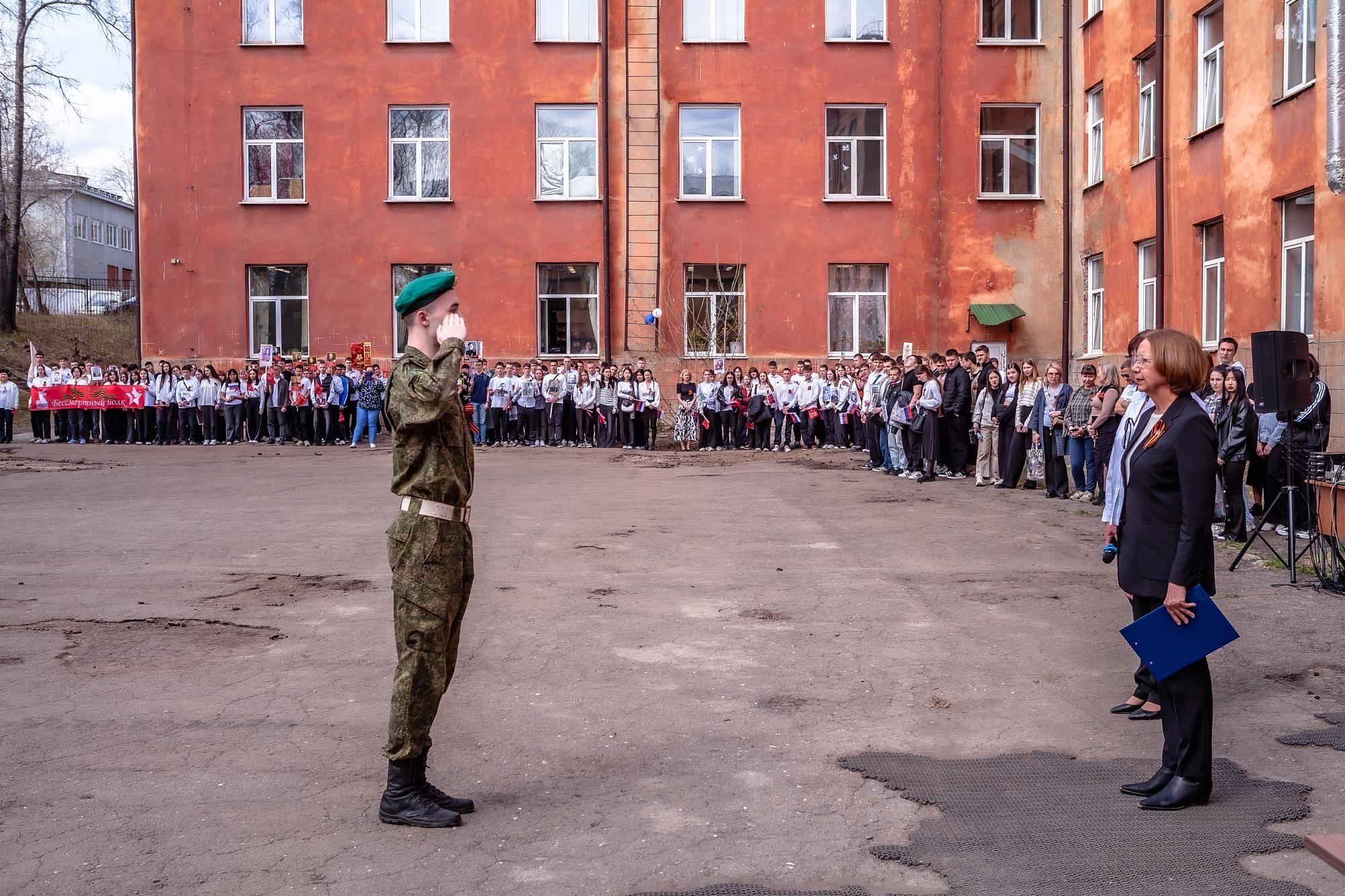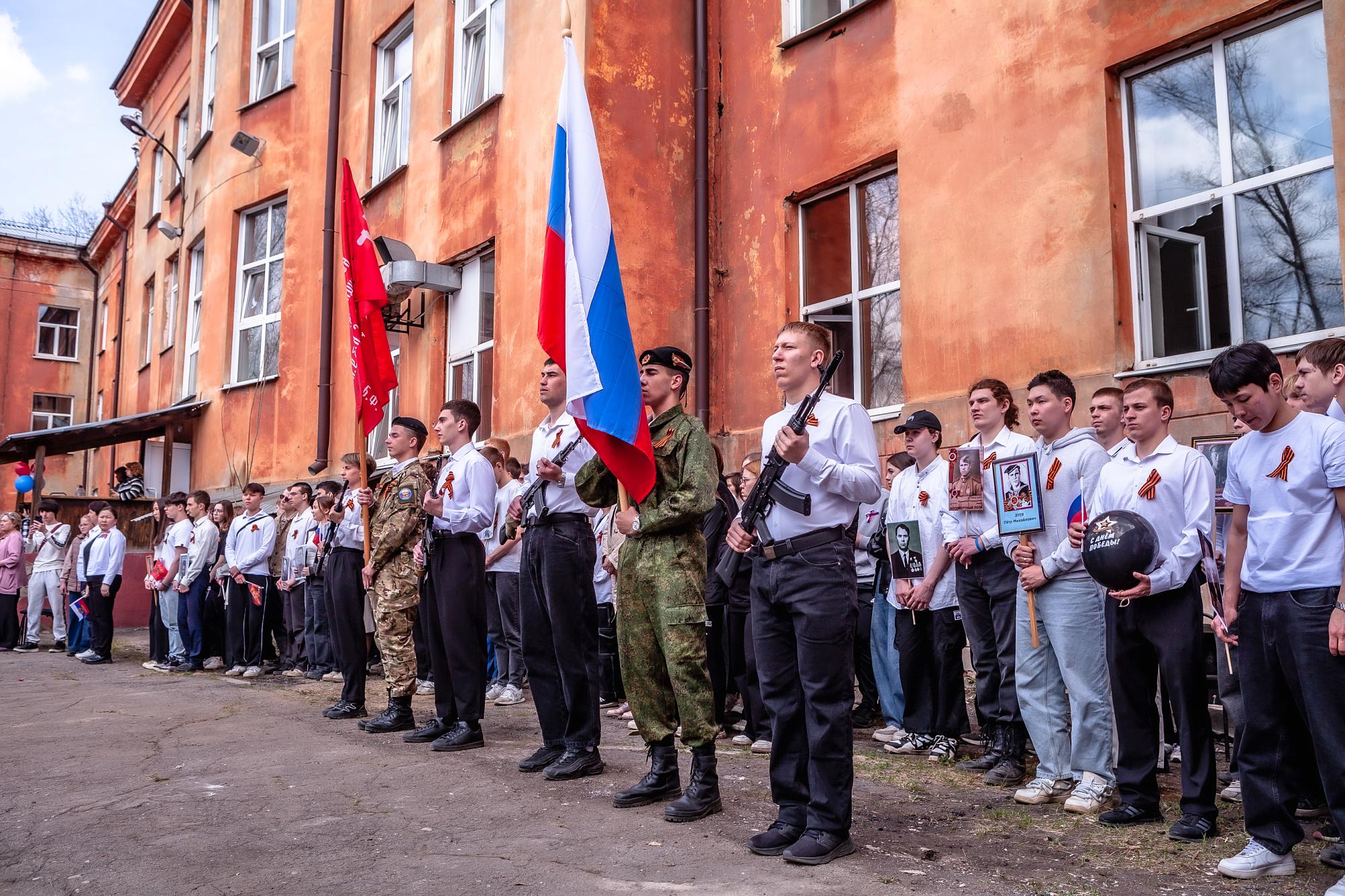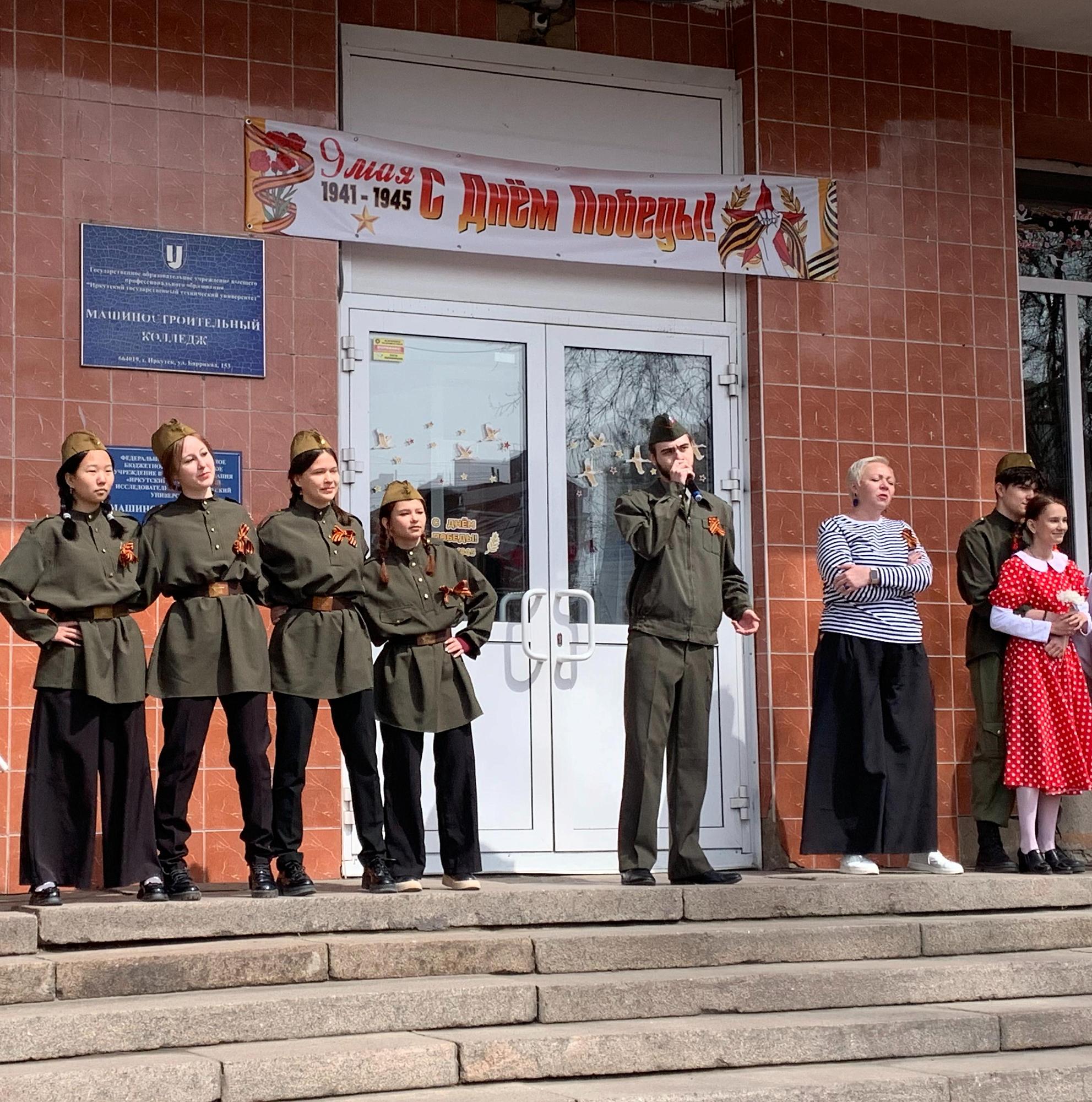 В Машиностроительном колледже 5 мая состоялся «Концерт на привале», ведущей которого стала преподаватель Светлана Терихова. У главного входа выступила «фронтовая» агитбригада. Студенты читали стихи, исполняли песни военных лет. Первокурсники колледжа оформили уголки боевой славы, собрав информацию о подвигах своих родных. При поддержке гендиректора ЗАО «Сибтрансэко» Сергея Безика работала полевая кухня с вкусной гречневой кашей. Также на концерт был приглашен директор питомника «К-9», который выразил преподавателям благодарность за ремонт автотранспорта для СВО.