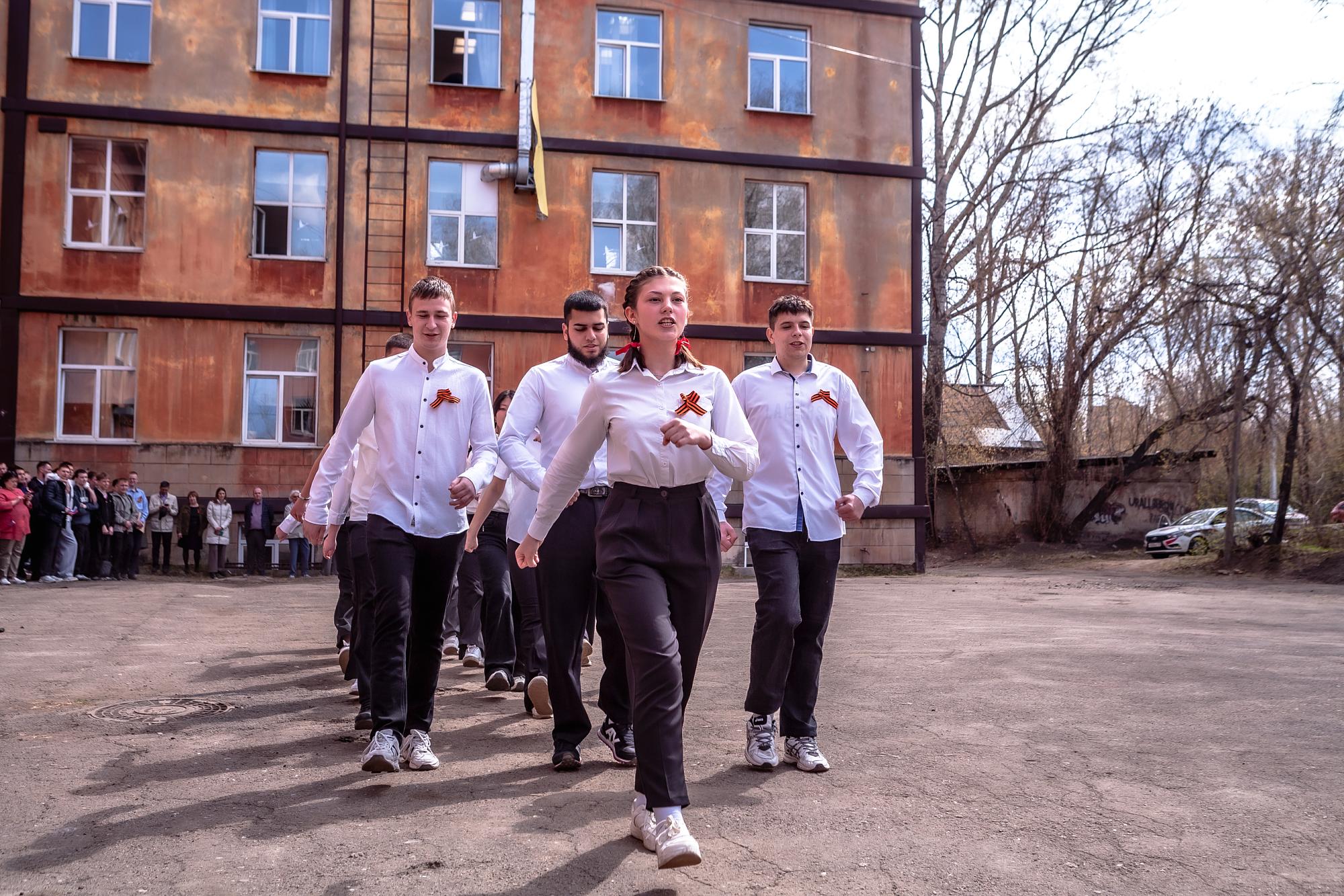 Геологоразведочный техникум 6 мая организовал традиционный смотр-конкурс строевой песни «Великая Победа – гордость поколений».