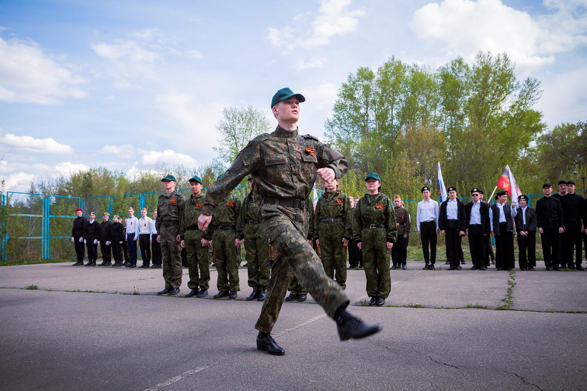 Мероприятие стартовало на спортплощадке общежития №13 со строевой подготовки. Политеховцы слаженно маршировали под песни «Катюша», «Маруся», «Группа крови на рукаве» и др. Выступления студентов оценивали старший прапорщик, младший инспектор ГУФСИН России по Иркутской области Андрей Свириденко, командир отделения разведывательной роты Андрей Жилкин.
