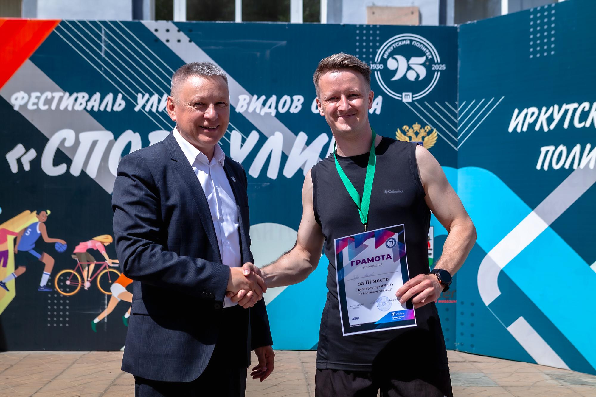 Церемонию награждения провели ректор Михаил Корняков и директор Центра спортивной подготовки Александр Демидов.