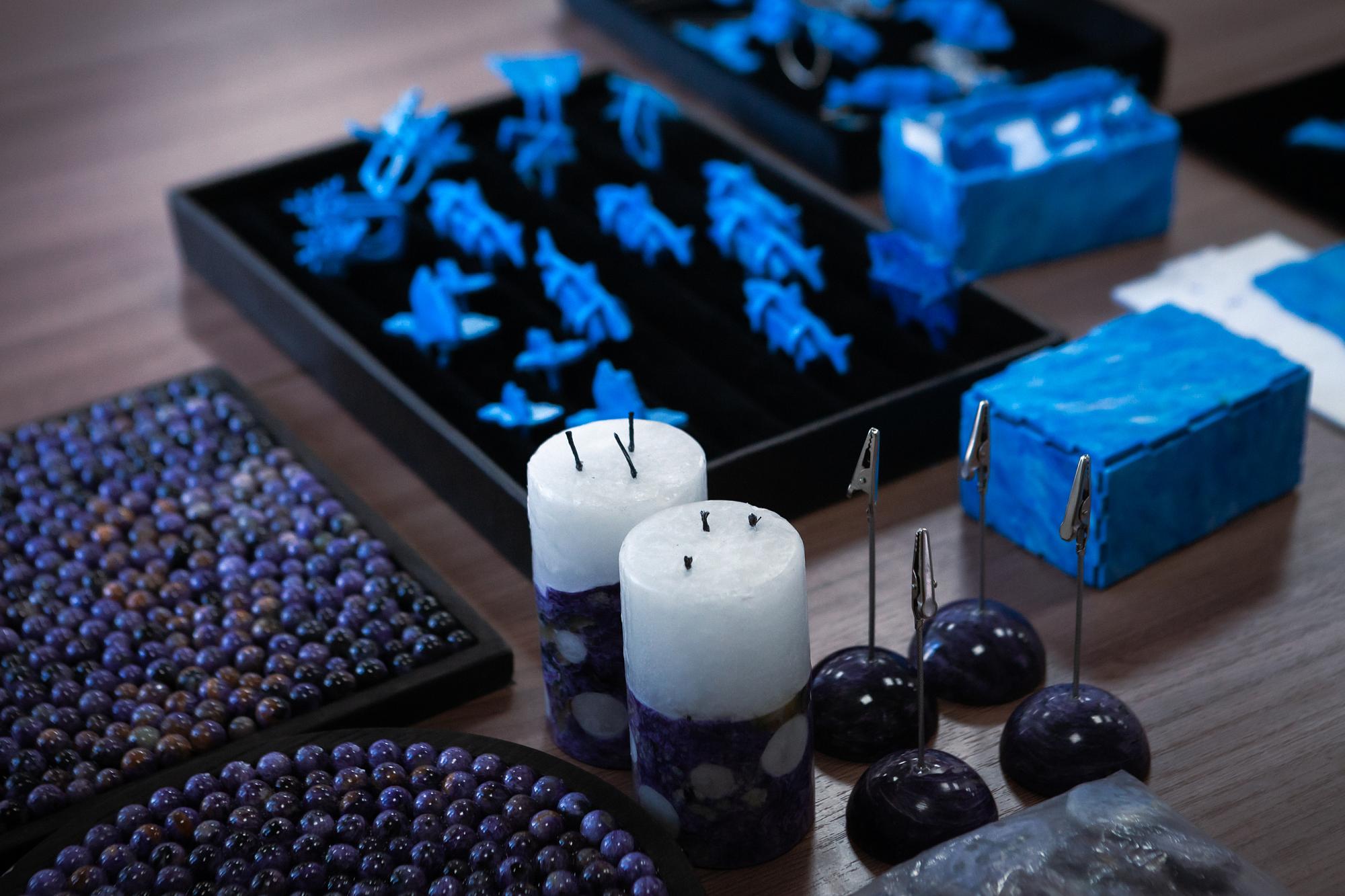 Группа под руководством Елены Павловой и Александры Анисимовой изготовила сувенирную продукцию из чароита для АО «Байкалкварцсамоцветы». Главным пожеланием заказчика была утилизация производственного брака, появляющегося в процессе обработки чароита (трещины, сколы, некондиционный цвет камня). На предприятии скопилось много бракованного, но пригодного к переработке материала.