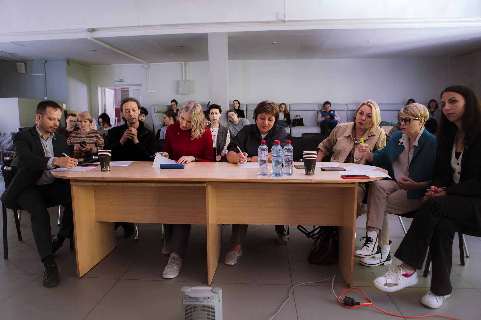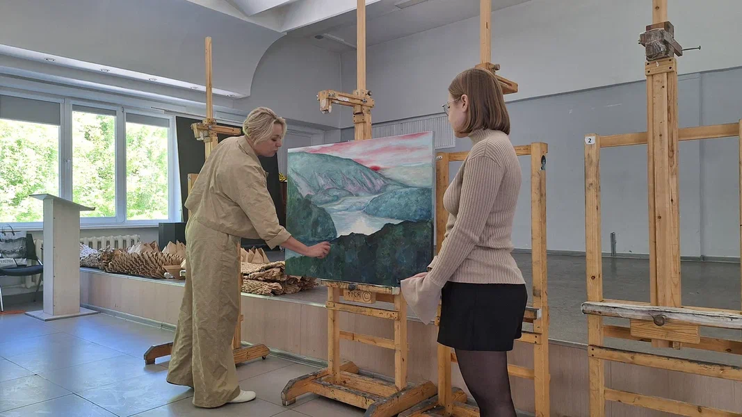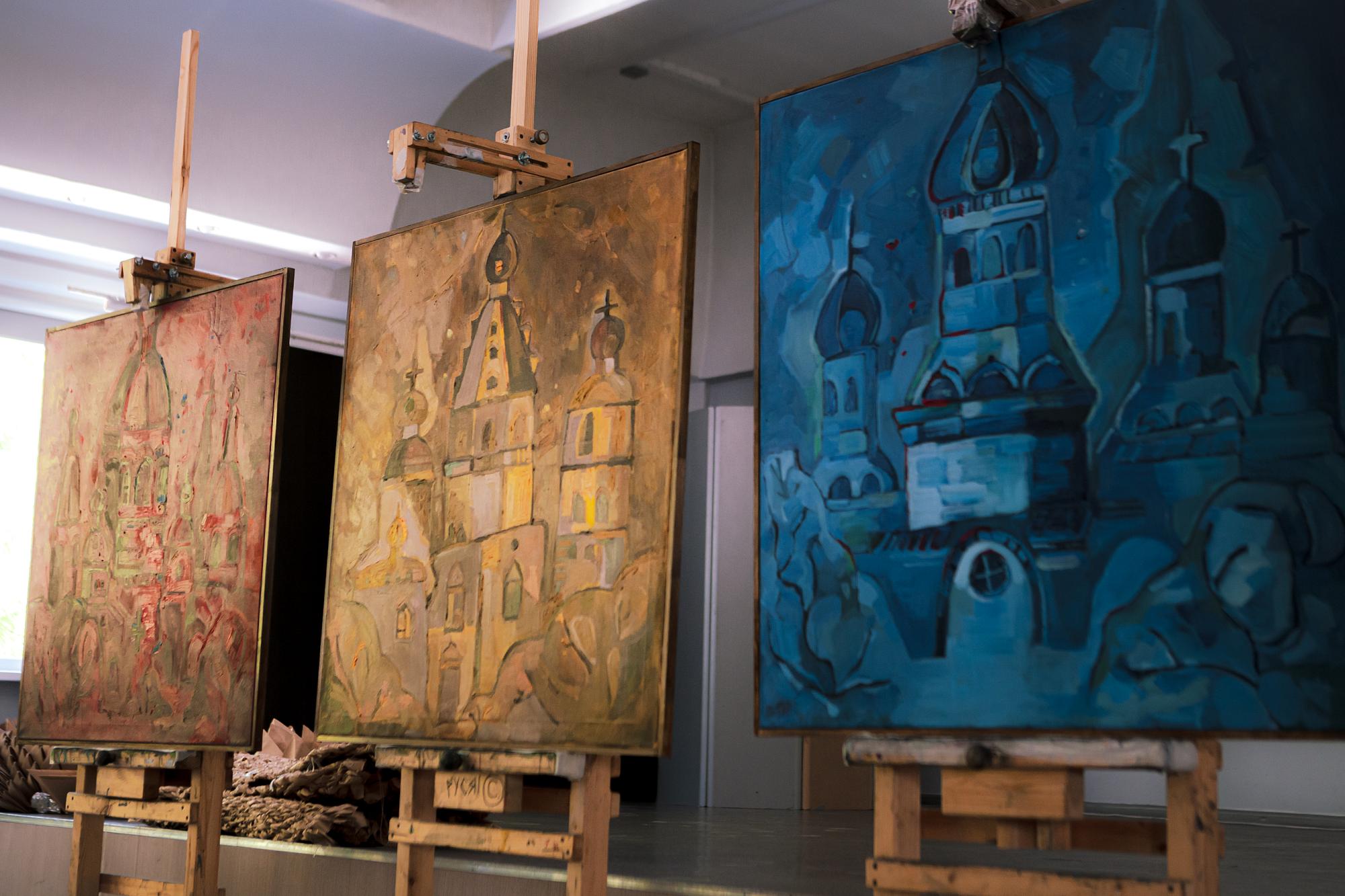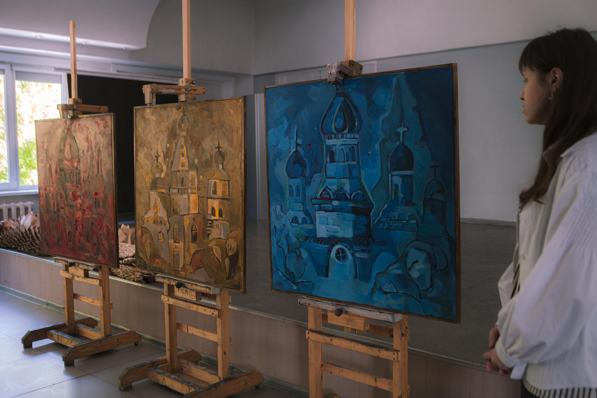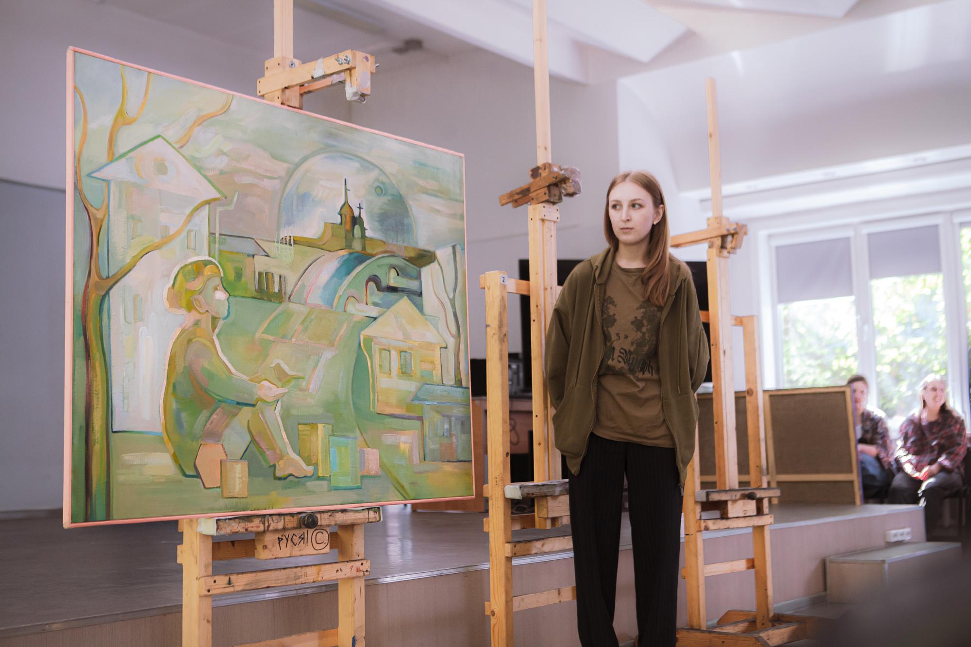 Первыми выступили студенты, претендующие на участие в выставках областного художественного музея. Анастасия Ревина подготовила триптих, изобразив масляными красками Казанскую церковь, Собор Богоявления Господня и Князе-Владимирский храм. Елизавета Полонская также акцентировала внимание на религиозной архитектуре, показав синагогу и римско-католический Приход Успения Богородицы. Ксения Одинаева и Елизавета Балакирева заинтересовались природными стихиями, «принимающими город в свои объятия».