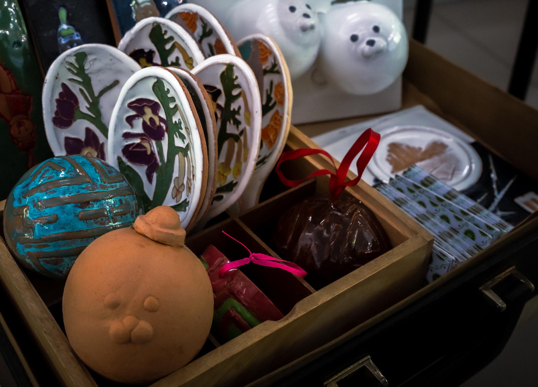 Студенты- будущие дизайнеры и архитекторы изготовили керамические сувениры в стилистике Сибири. Они придумали фигурки, ёлочные игрушки, магниты в виде нерп, омуля, иркутских деревянных домов и многое другое. Сувенирную продукцию можно использовать как корпоративные подарки для зарубежных партнёров университета.
