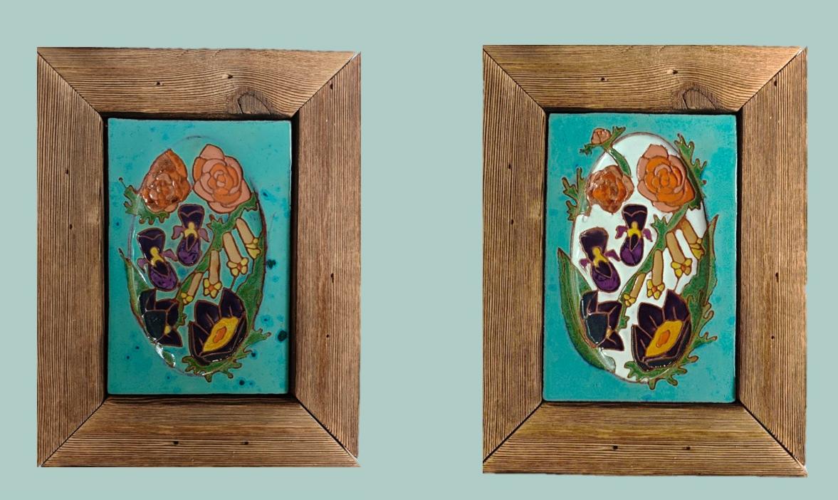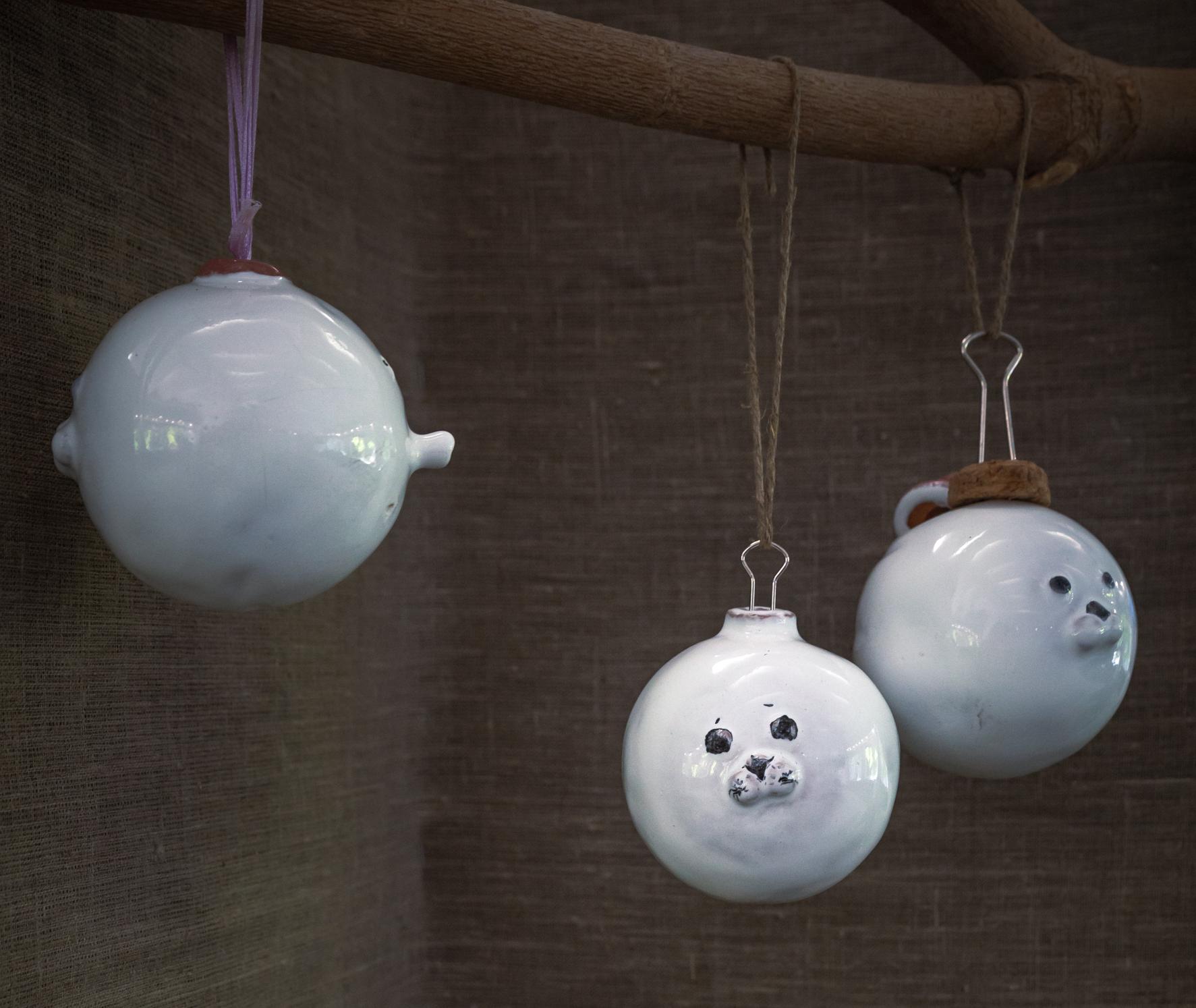 Ульяна Яковлева изготовила новогодние шары в виде мордочек нерпы. Юлия Мельник – автор набора ложек и панно «Сибирская флора», вдохновлённого ирисами и жарками.