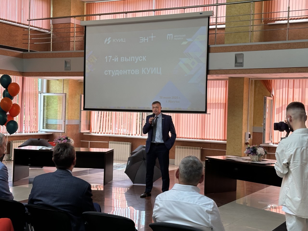 Вчерашних студентов поздравил директор КУИЦ «ЕвроСибЭнерго-ИРНИТУ» Владимир Корнев. Он отметил, что выпускниками стали представители четырёх вузов Приангарья – ИРНИТУ, ИрГАУ им. А.А. Ежевского, ИрГУПС и БрГУ (Братск). Большинство из них являются иркутскими политеховцами.