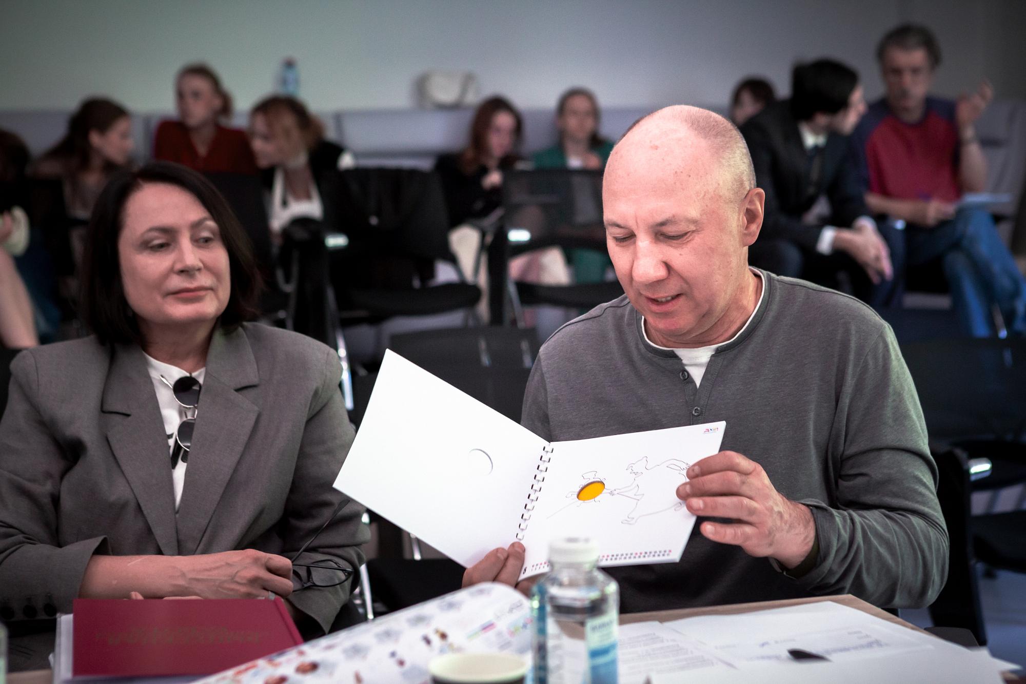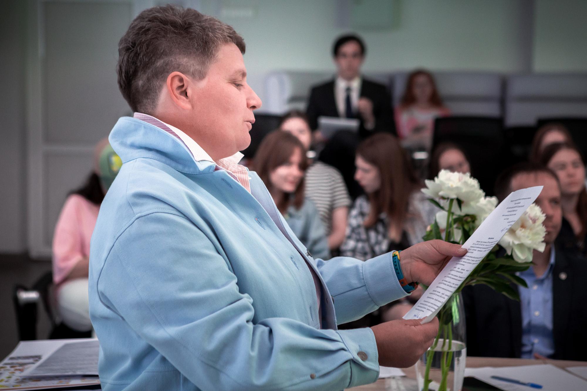 Также выпускники получили обратную связь от заведующего кафедрой монументально-декоративной живописи и дизайна имени В. Г. Смагина Дмитрия Дорохина и профессора Ольги Железняк.