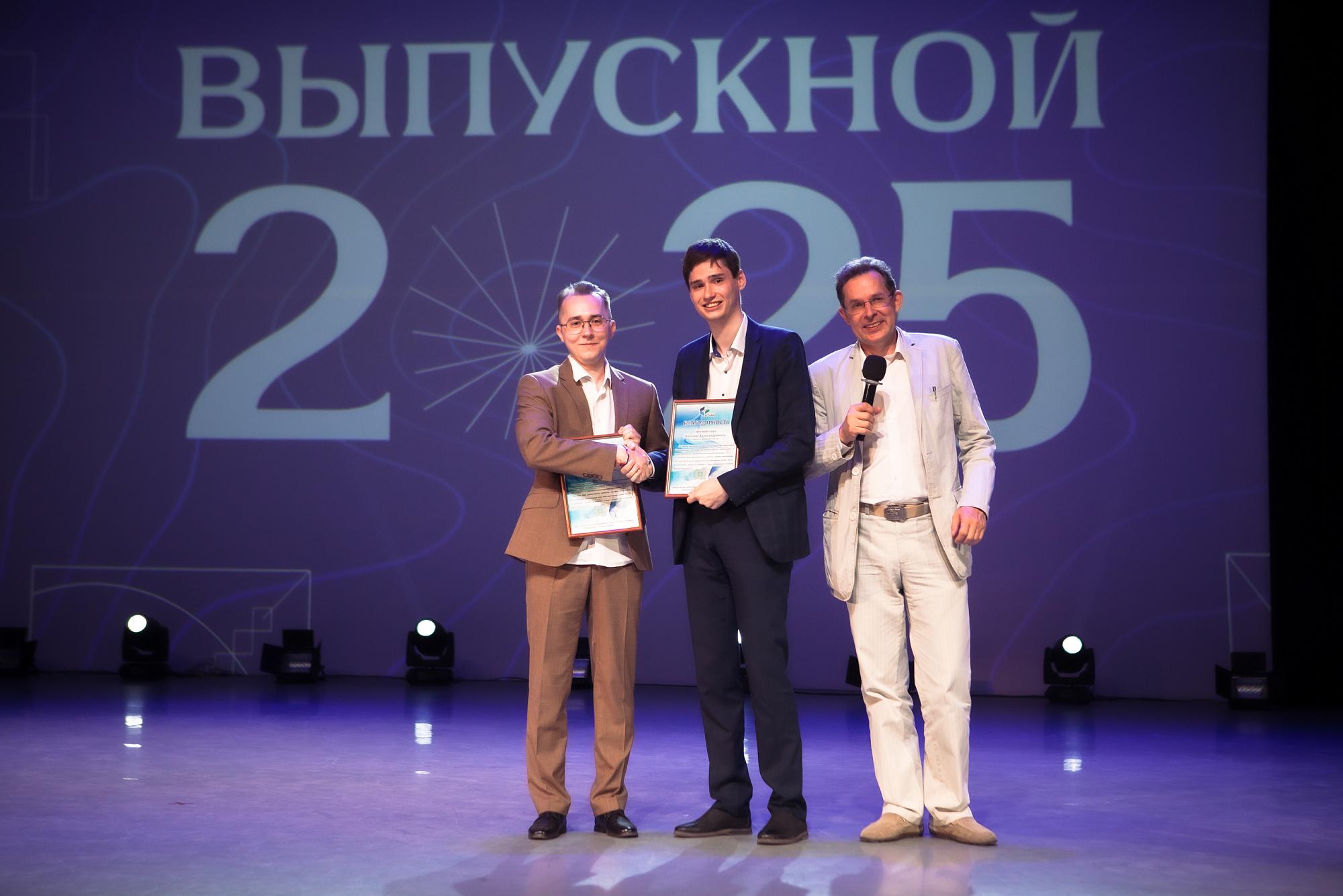 Документ о высшем образовании вручили ректор Михаил Корняков и руководитель лаборатории сетевых систем и ИТ-инфраструктуры Алексей Аношко. Выпускники, прошедшие обучение на Цифровой кафедре, также были удостоены дипломов.