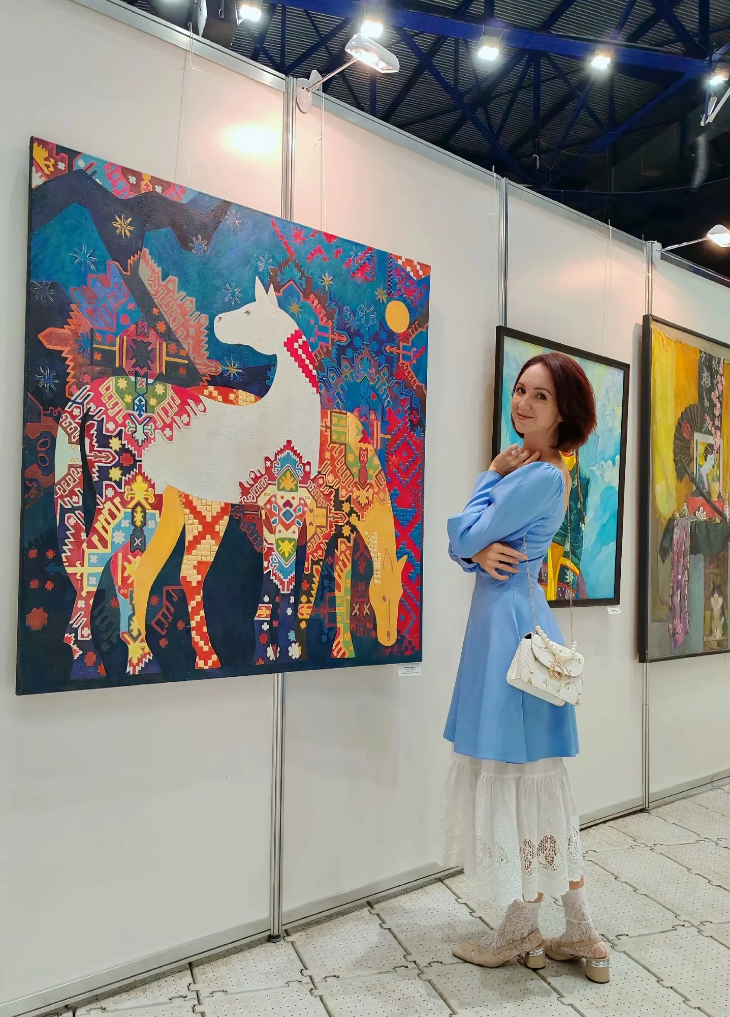 В центре одной из картин она нарисовала родительский дом, который находится в районе Маратовского кольца. Героями другого произведения стали разноцветные лошади. В каждой работе присутствует орнаментальная вышивка, характерная для сибирских сёл. Художница вдохновлялась экспонатами краеведческого музея.