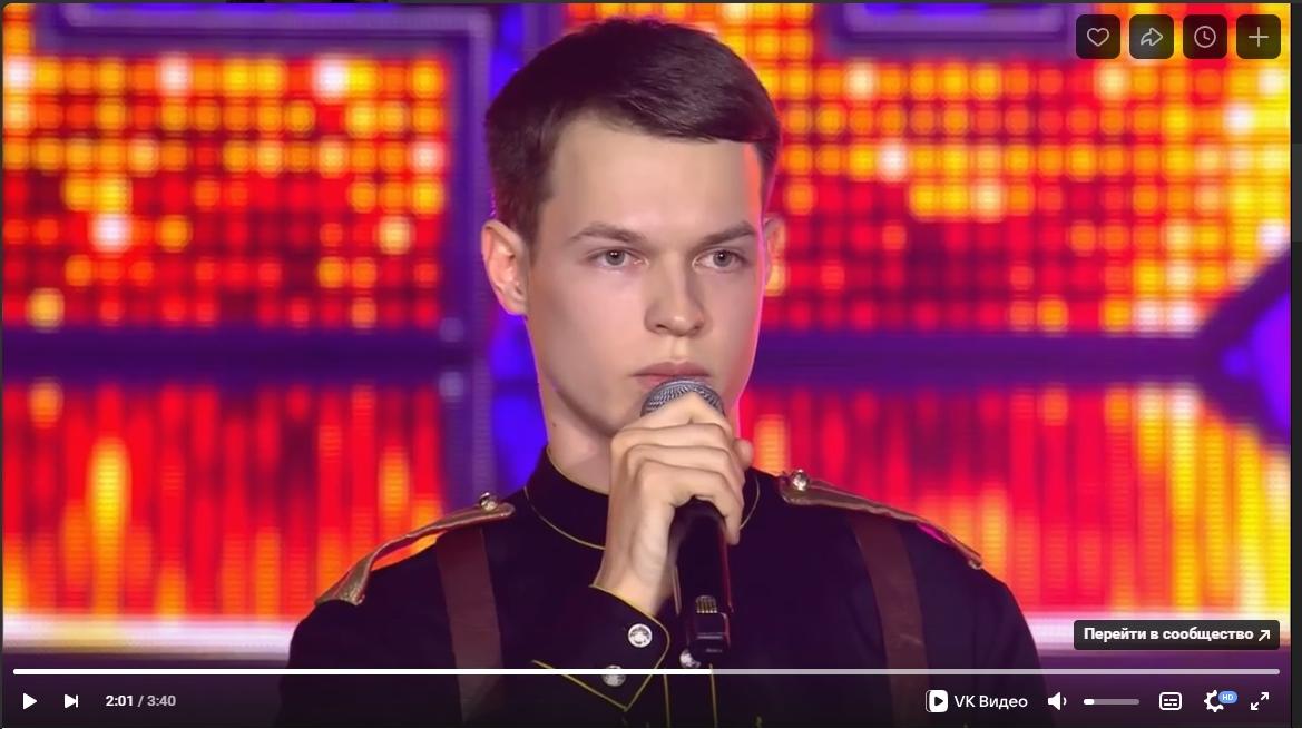«Первая композиция стала моей визитной карточкой на конкурсе, так как я использовал аранжировку Московского казачьего хора. Найти её крайне сложно, но друзья помогли. Я постарался максимально показать диапазон голоса, спев в трёх разных тесситурах. А «Конь» — это уже народная песня, откликающаяся в сердце у каждого. К тому же, незадолго до кастинга мы с Ириной Михайловной Долотовой разучивали партии из этой песни», — поясняет студент выбор репертуара.