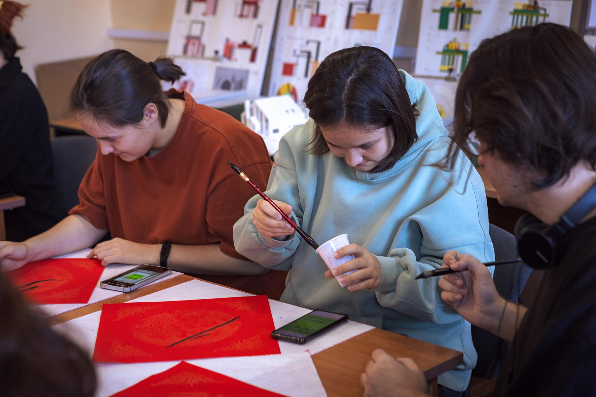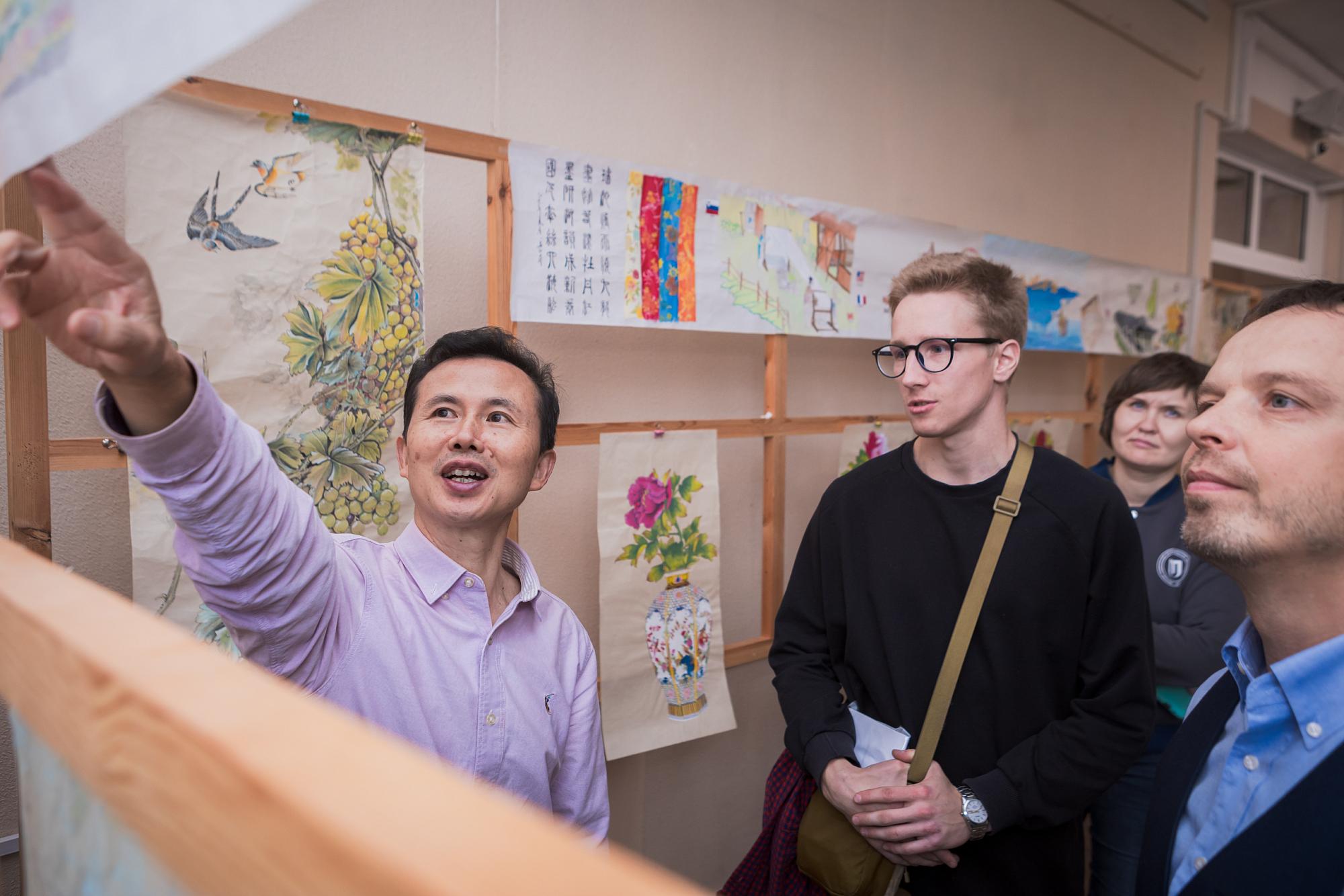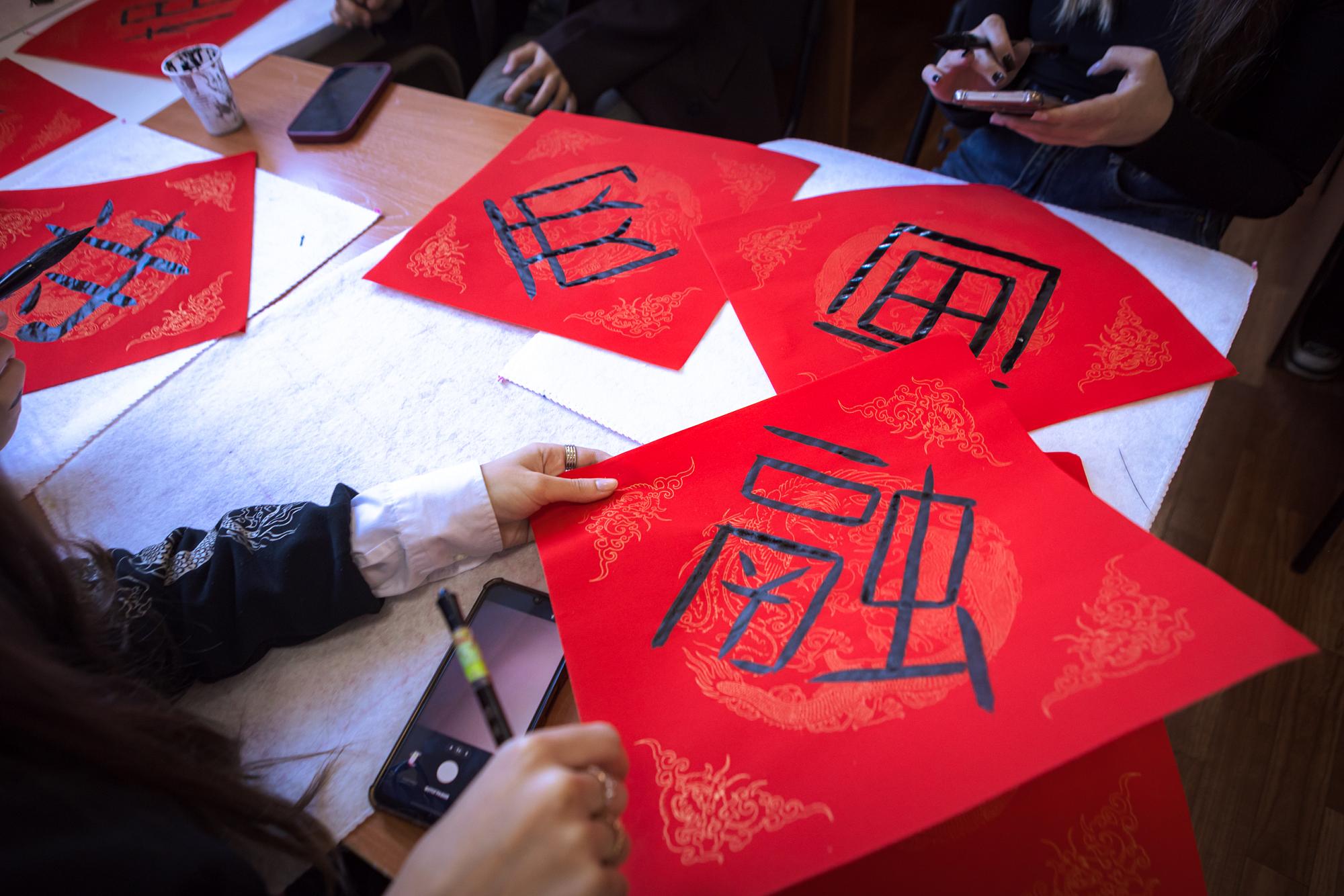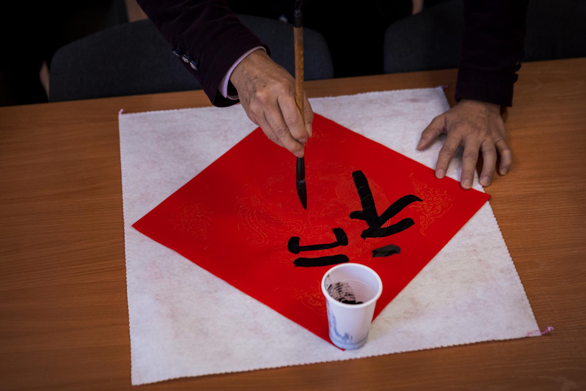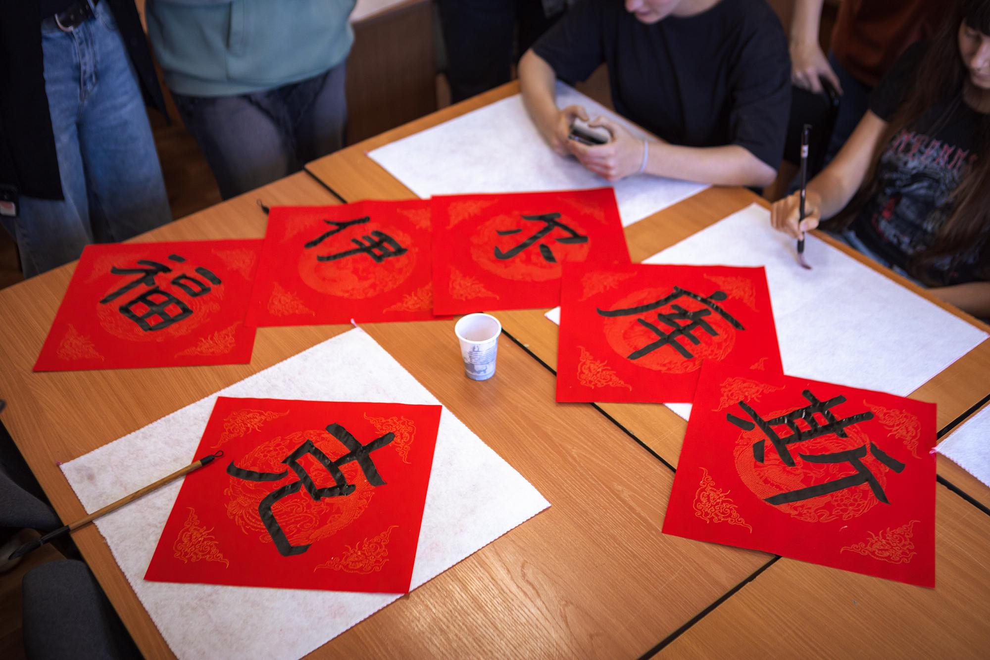 С культурой своей страны Цзян Хуншэн познакомил и будущих архитекторов. Художник предложил студентам написать иероглифы из лиричного стихотворения о девушках. Показывая, как выдерживать строгий порядок черт, мастер говорил о символизме искусства китайского письма.