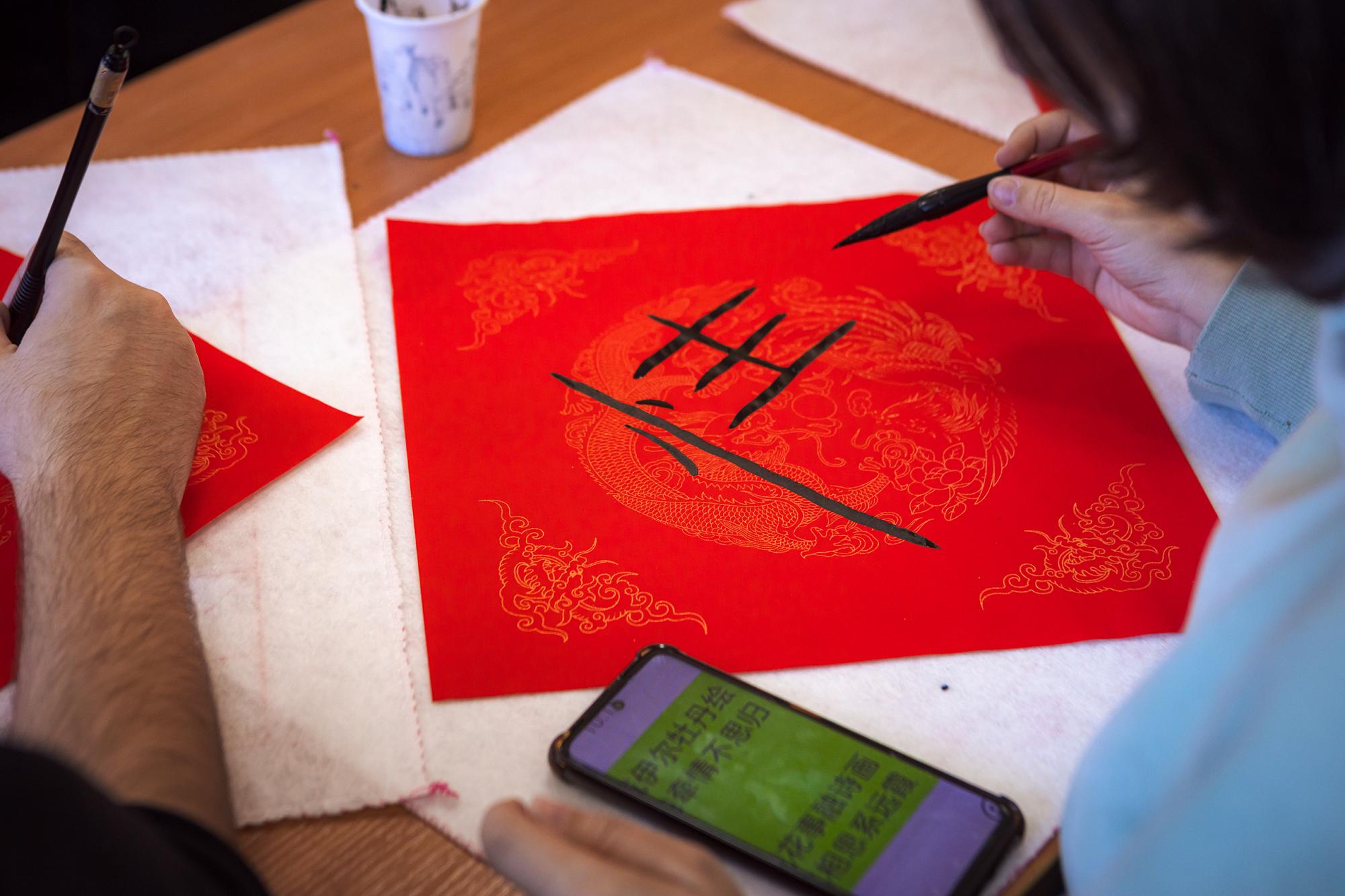 По его словам, чтобы отточить мастерство каллиграфии в совершенстве, требуется 30-40 лет. Через иероглифы можно многое понять о культуре и мировоззрении китайцев. Например, «Фу» 福 переводится, как «счастье». Иероглиф состоит из нескольких ключей, обозначающих рот, поле и крышу. Если сложить эти три элемента воедино, то получится, что тот, кто сыт, одет, имеет дом, уже счастливый человек.