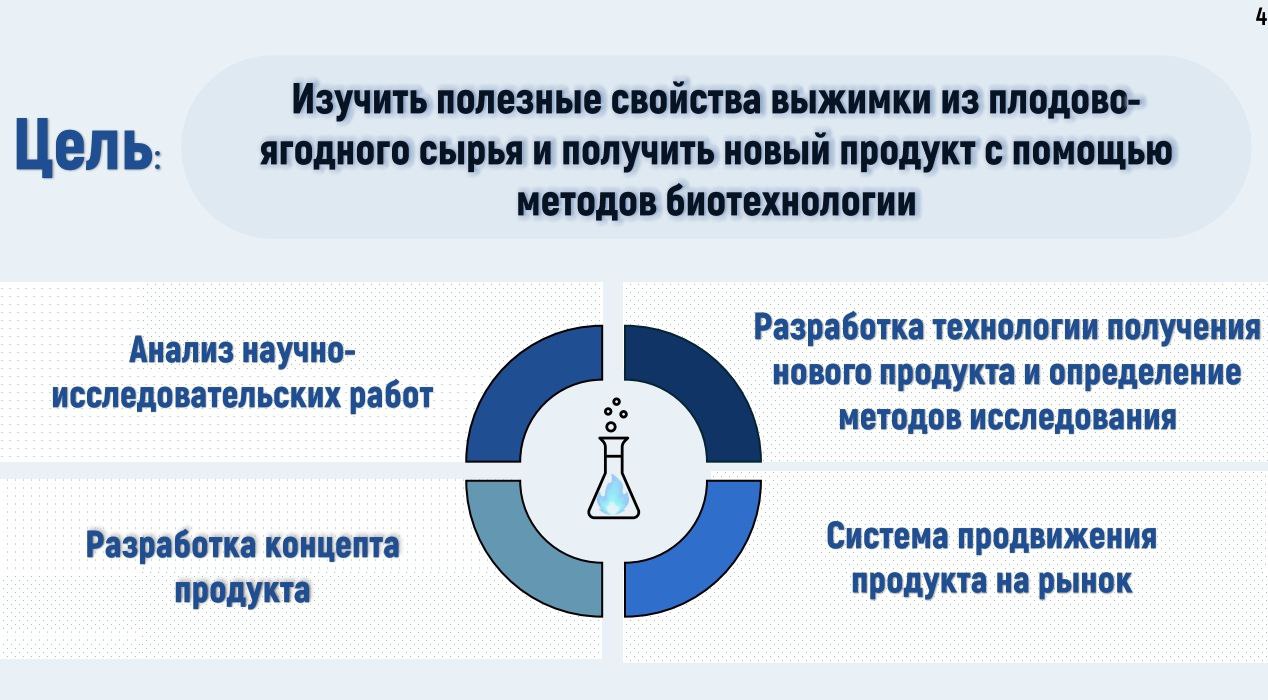 В финале команды презентовали научно-исследовательский проект. Ключевым условием была переработка вторичных ресурсов для получения нового продукта с использоваанием методов биотехнологий. Команды разработали инновационные решения по переработке облепихового шрота, выжимок плодово-ягодного сырья, подсолнечной муки.