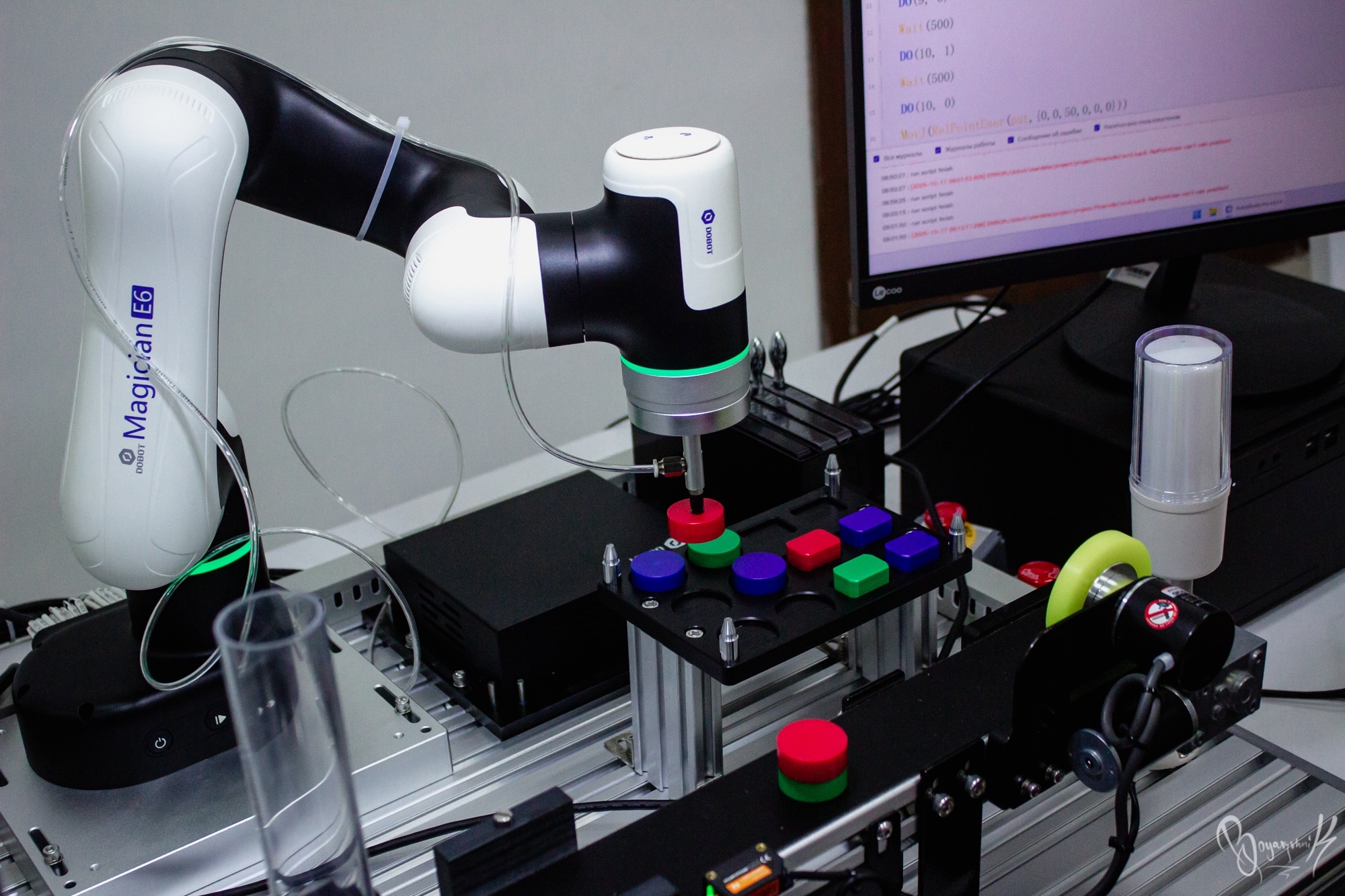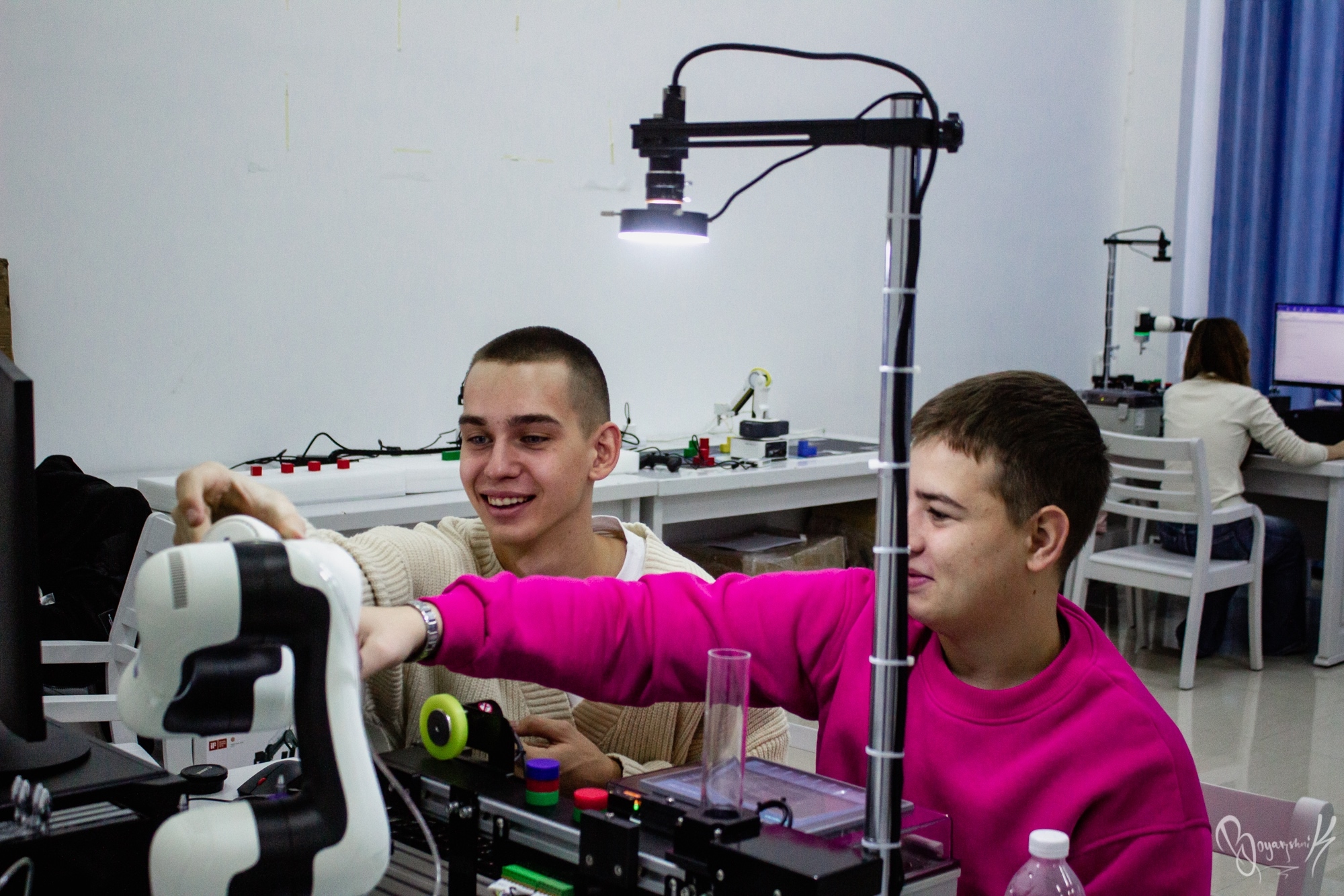 По информации Евгения Бояркина, студентов определили в подразделение, занимающееся подготовкой кадров для автомобилестроения. Они поэтапно обучались работе с шестиосевым манипулятором dobot magician e6. Этот компактный робот, предназначенный для учебных целей, позволяет отработать навыки перемещения грузов, лазерной гравировки и сборки деталей. Оборудование моделирует ситуации, с которыми специалисты сталкиваются на авиазаводах, машиностроительных предприятиях.
