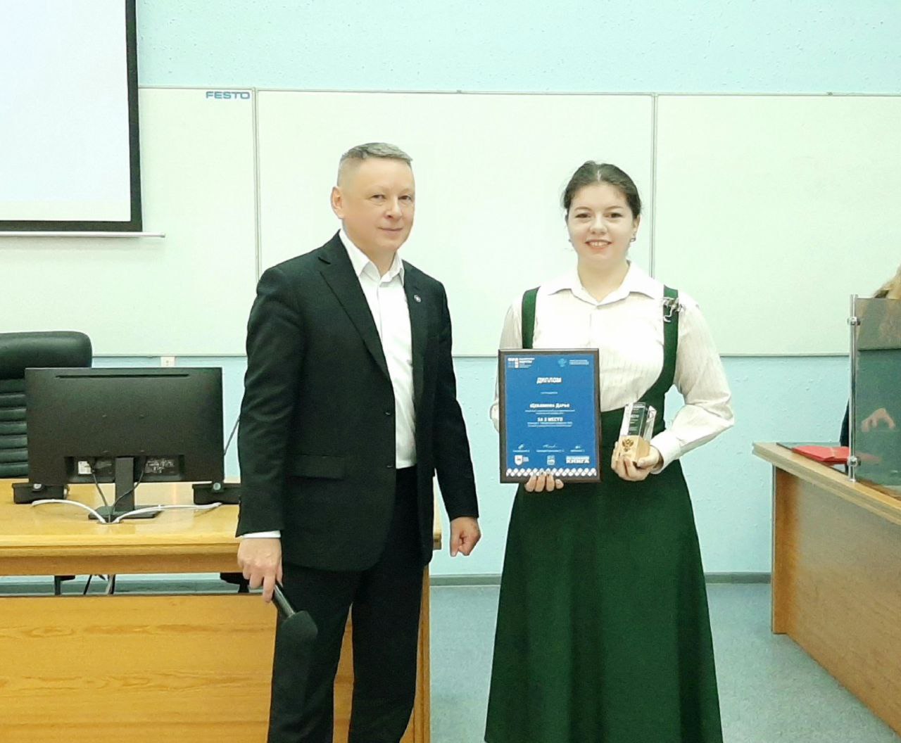 С успехами Дарью Щеблякову поздравил ректор Михаил Корняков, вручив диплом и памятную статуэтку от оргкомитета конкурса.
