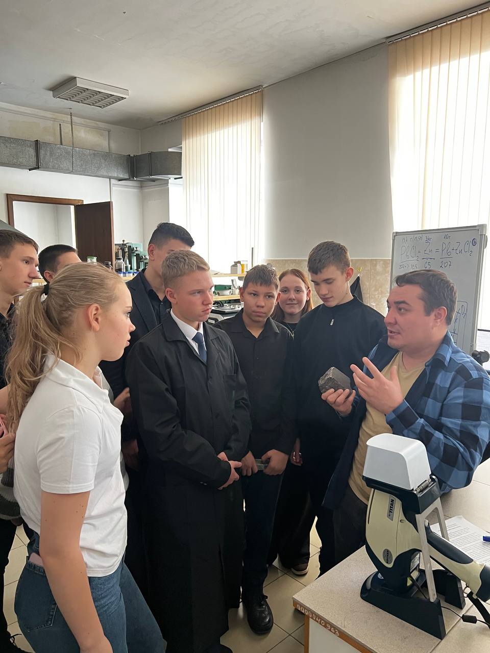 Для определения чистоты конечного продукта преподаватель предложил сделать экспресс-анализ при помощи рентгенофлуоресцентного анализатора. Школьники не только исследовали образец свинца, но и изучили состав различных материалов: от редких тяжелых металлов (висмут, кадмий) до легких (алюминий, кремний) и даже проанализировали металл своих ювелирных украшений.