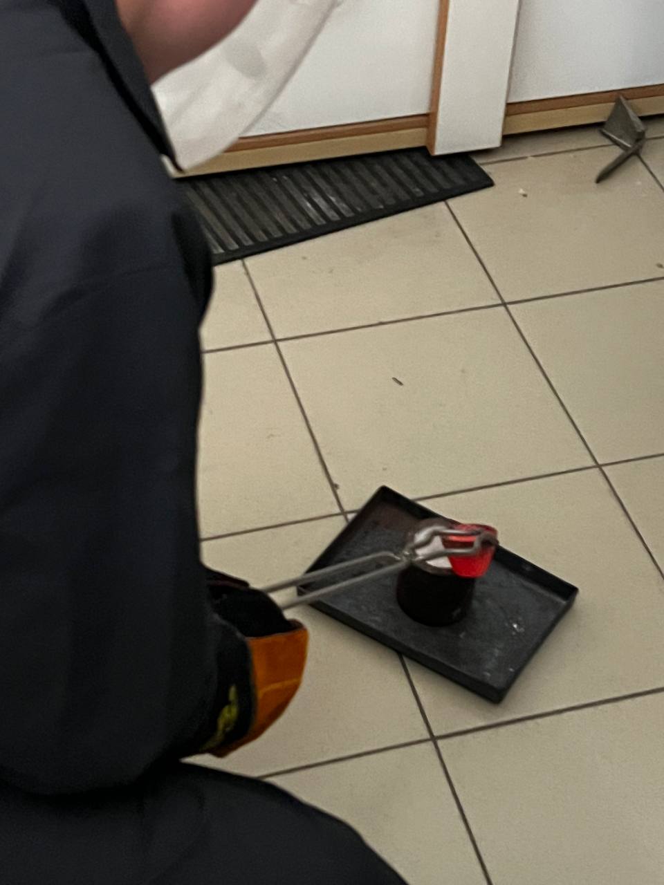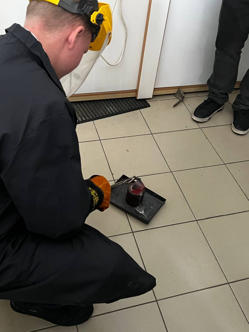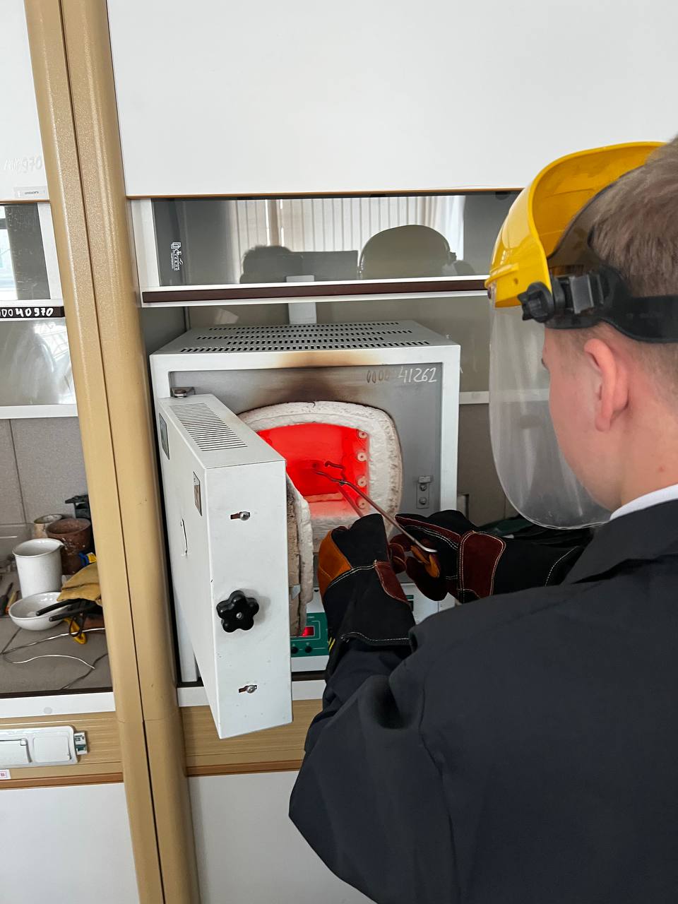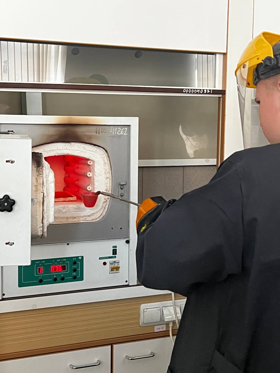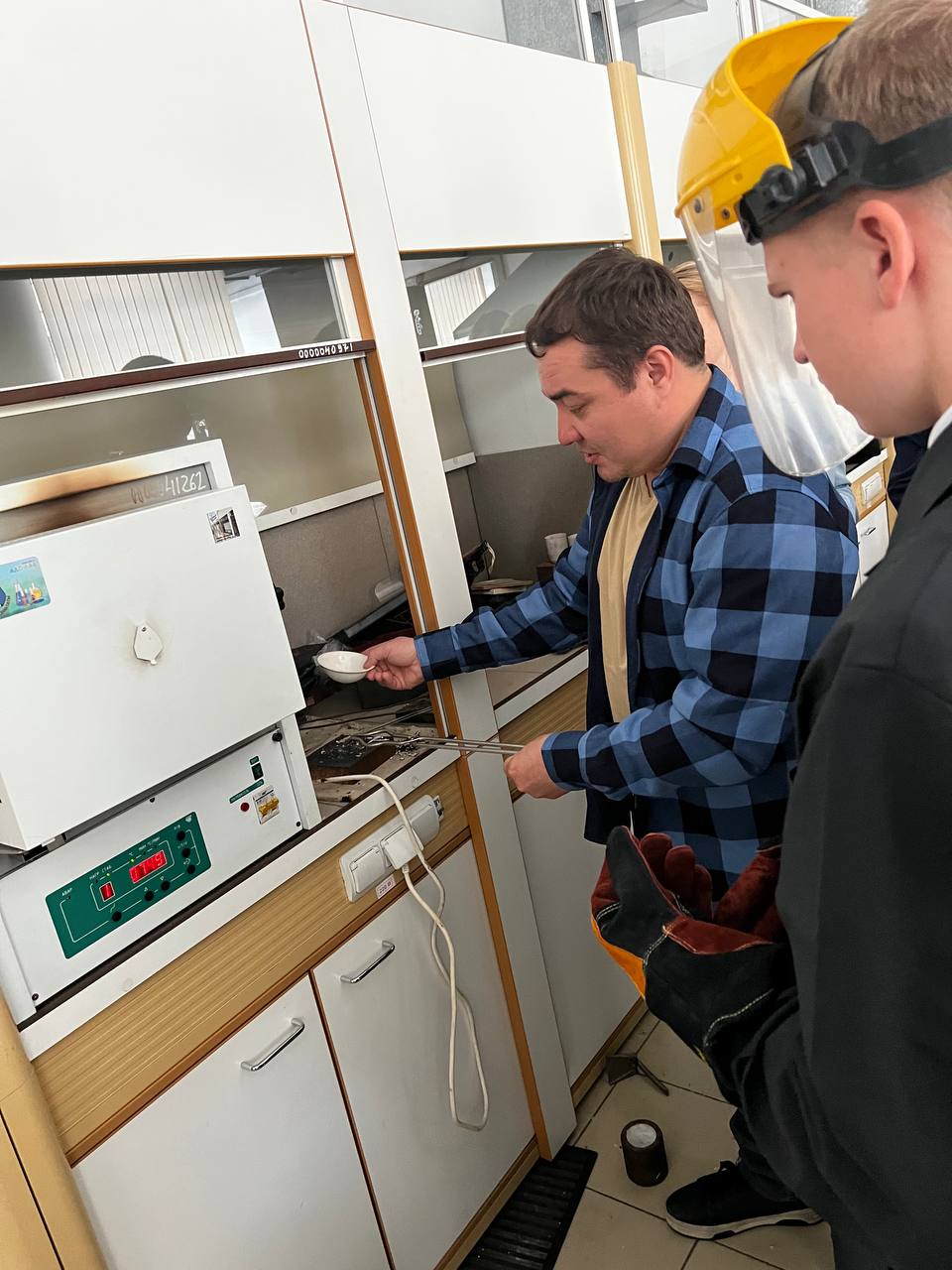 Под руководством преподавателя школьники экспериментировали с металлами, выплавили слиток свинца (Pb) с помощью муфельной печи при температуре 750°C.