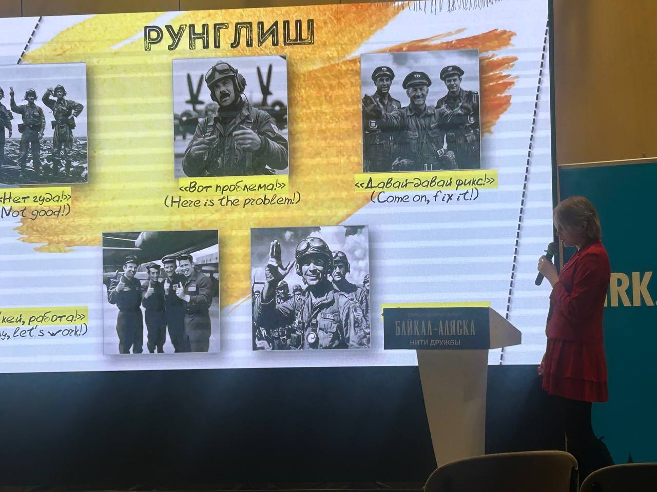 Третьекурница, будущий лингвист Маргарита Шолохова посвятила выступление коммуникативным практикам, которые использовались в ходе реализации проекта АЛСИБ. Эта аббревиатура отсылает к воздушной трассе «Аляска-Сибирь», предназначенной для перегонки самолетов и продовольствия по договору ленд-лиза между СССР и США в 1940-е годы. Маргарита рассказала участникам форума о преодолении языкового барьера между советскими и американскими лётчиками, участвовавшими в АЛСИБ.