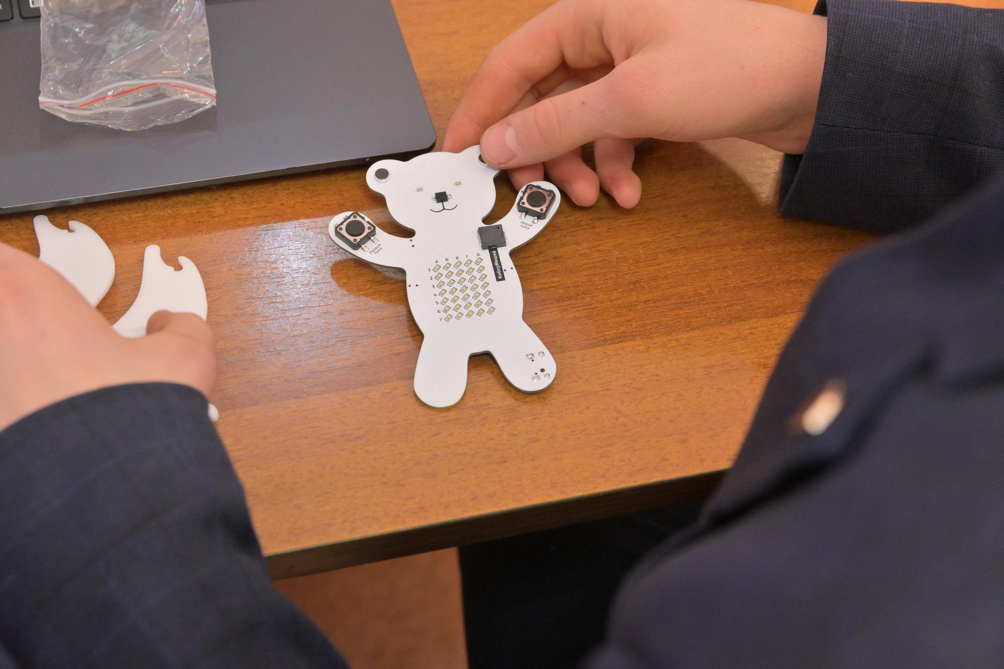 Руководитель цифрового производства и региональных программ компании «Полюс-НТ» Дарья Цивилева рассказала о 15-летнем опыте компании в развитии инженерного образования. «ИнСитиЛаб» специализируется на разработке инновационных образовательных технологий и программно‑аппаратных решений. «КиберМишка» – один из тренажёров, оснащённый микроконтроллерами, светодиодами, микрофонами, ИК-датчиками и динамиками. При нажатии на его лапы, «мишка» оживает, реагирует соответствующим цветом свечения светодиодов. Устройство помогает осваивать основы алгоритмического мышления и инженерного подхода через практическую работу с робототехнической платформой.