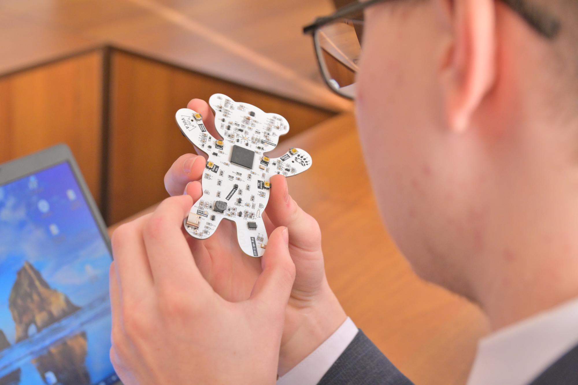«Сегодня торжественный момент – вручение замечательных конструкторов «КиберМишек». Это не просто игрушка, а интерактивный помощник. Надеюсь, ребята получат необходимые знания и поступят в лучшие университеты».