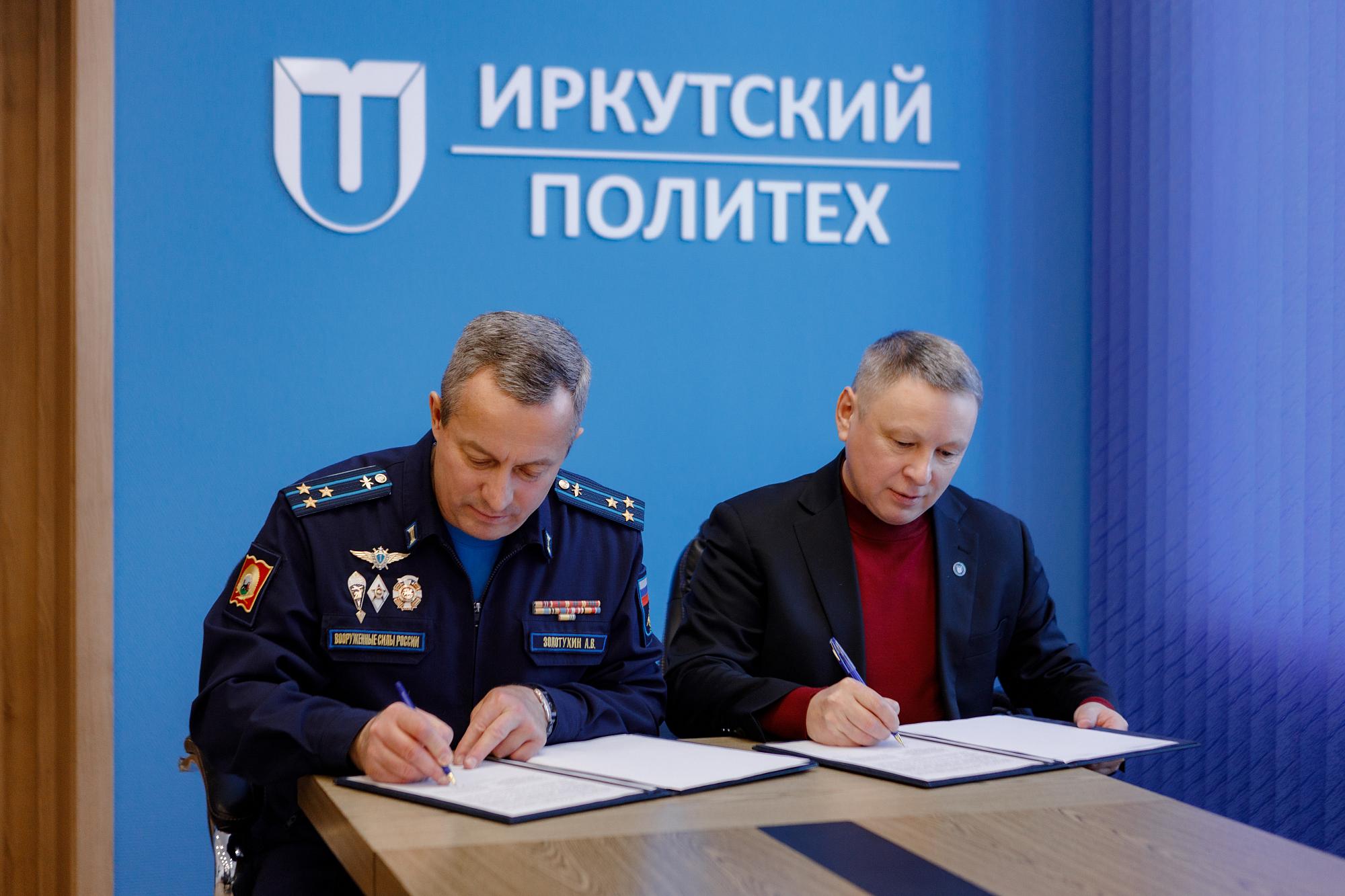 ИРНИТУ и Иркутское суворовское военное училище Минобороны РФ намерены активно развивать взаимодействие в сфере духовного, нравственного и патриотического воспитания молодежи, ориентированного на подготовку к службе в рядах Вооруженных Сил РФ. Соглашение о сотрудничестве в конце декабря подписали ректор Иркутского политеха Михаил Корняков и начальник училища Анатолий Золотухин.