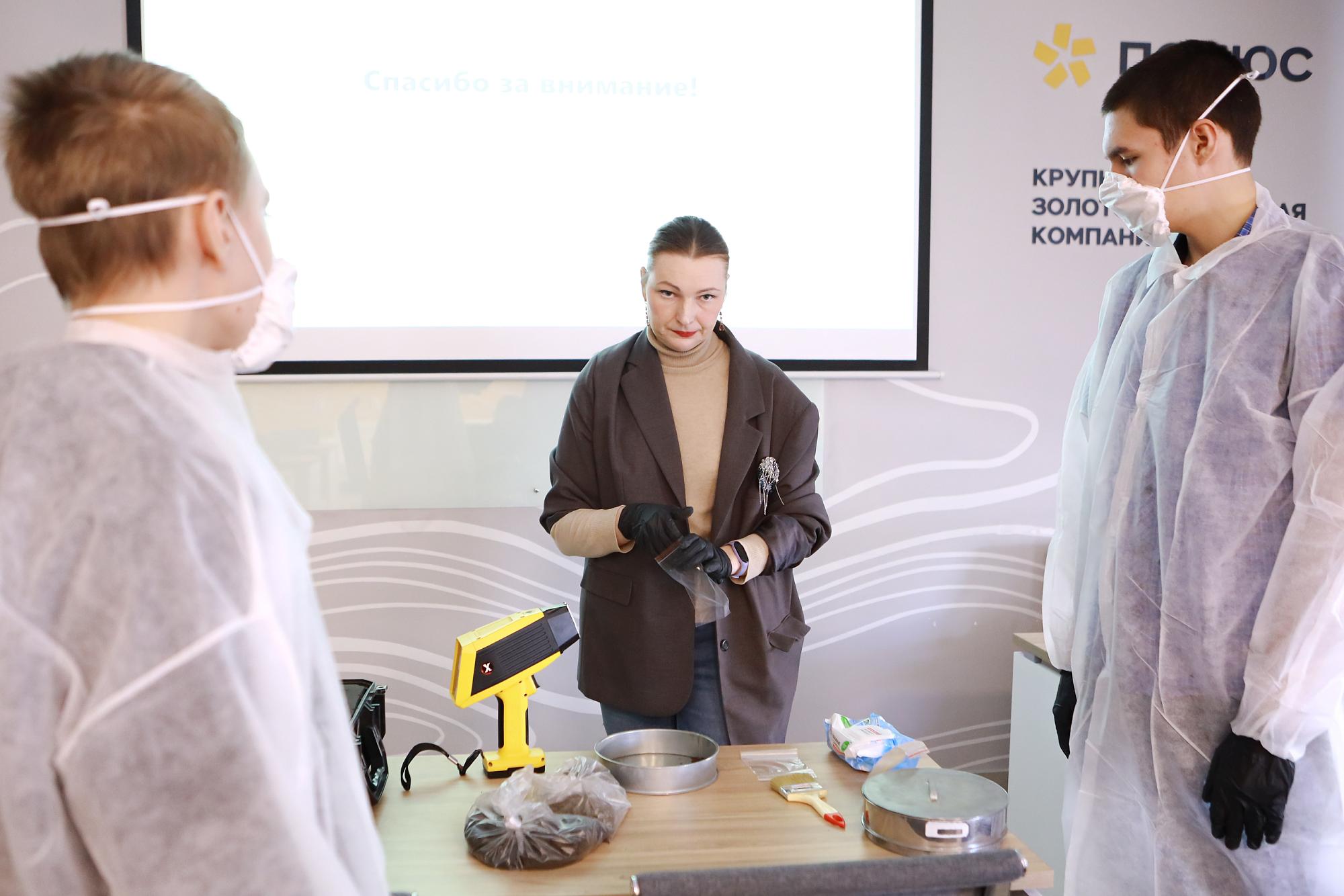 Сибирская школа геонаук (СШГ) предложила ребятам войти в роль геоэкологов и научиться выявлять мышьяк в почвах. Занятие провела инженер-исследователь департамента геоэкологии Анастасия Курина. С её помощью ребята просеивали через сито обычную землю и почву, отобранную на бывшем