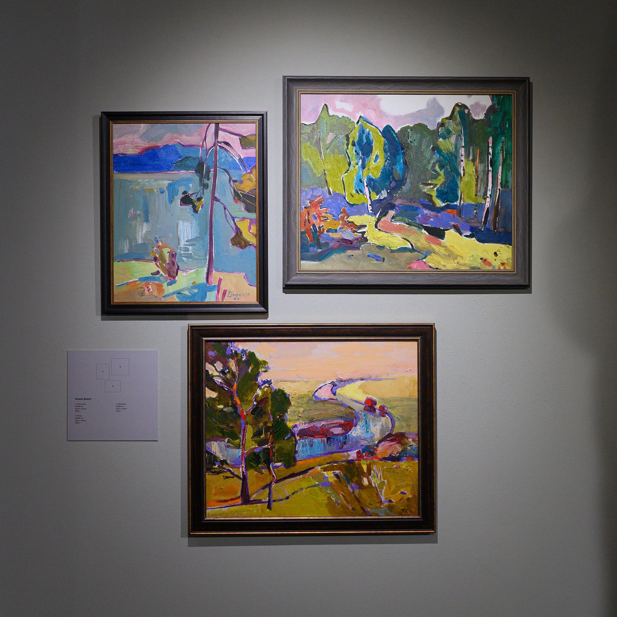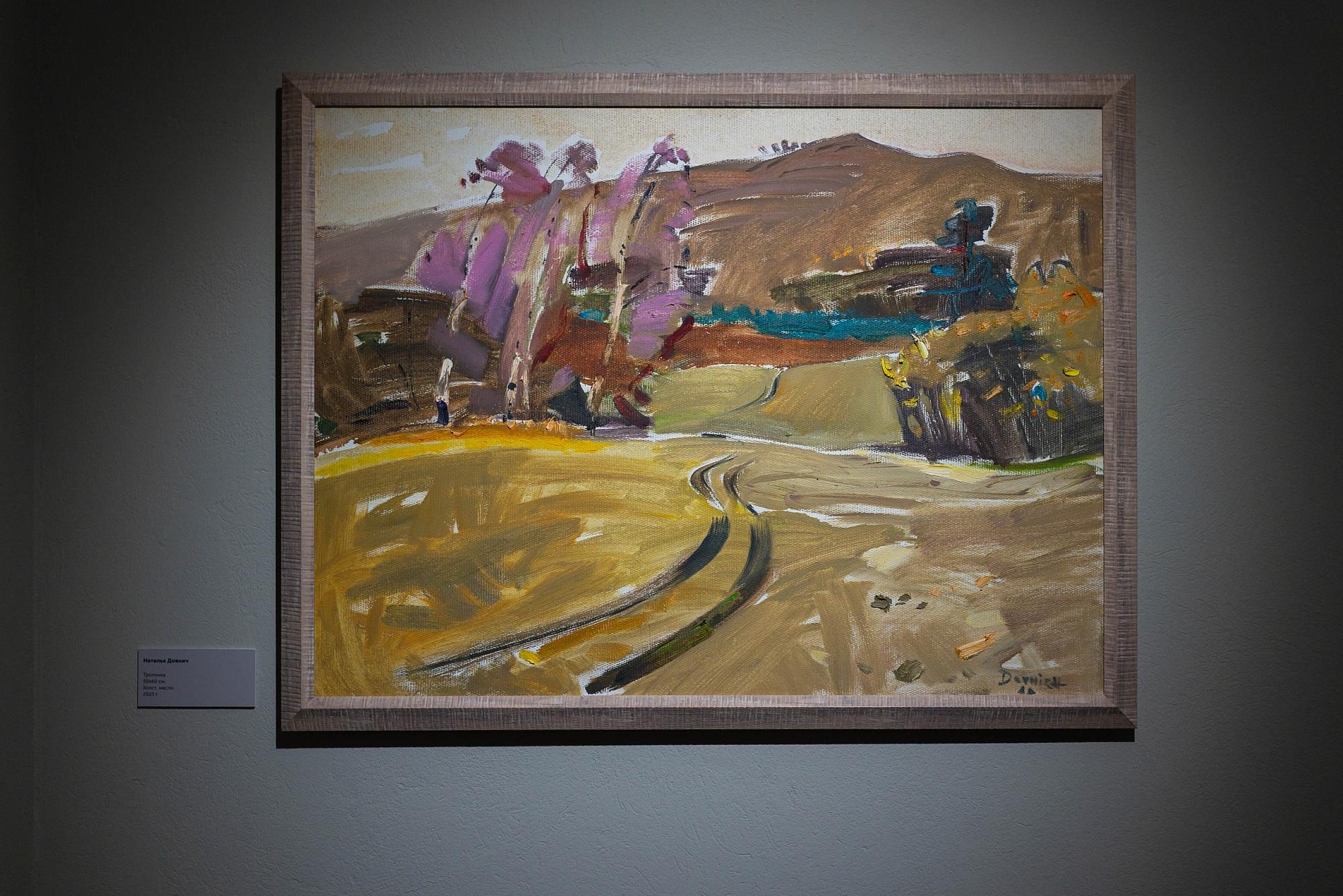 Наталья Довнич особенно отмечает этюды, созданные в Баргузинском заповеднике на Байкале (арт-резиденция «Баргуджин Токум»). Часть пейзажных работ появилась во время пленэра на берегу залива Ангары. Пленэр стал частью творческой смены для студентов «Сибирский характер» в лагере «Политехник». Также на выставке можно встретить серию «По Поленовским местам».
