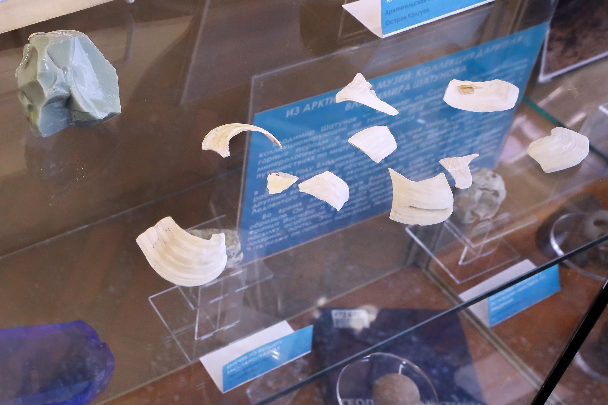 Во время этой поездки путешественник собрал много интересных образцов на побережье Арктики, на островах Земли Франца–Иосифа и поделился ими с нашим музеем. Чтобы сделать посылку особенной, Владимир упаковал образцы в настоящий ящик полярной почты. Это придало коллекции историческую изюминку. Чуть позже он прислал коллекцию с острова Вайгач», ̶ рассказала главный хранитель фонда Минералогического музея Мария Матвеева.