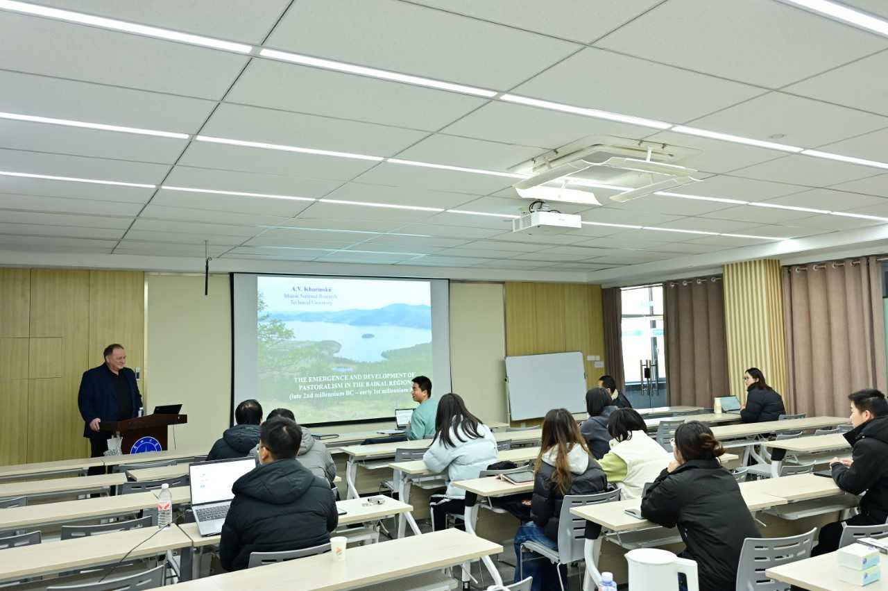 В начале поездки политеховец выступил перед аспирантами Университета Ланьчжоу. Он рассказал о появлении и развитии скотоводства в Байкальском регионе. Лекция охватила период конца І тыс. до н.э. — начала І тыс. н.э. Затем профессор представил ключевые факты по формированию северной периферии Монгольской империи.