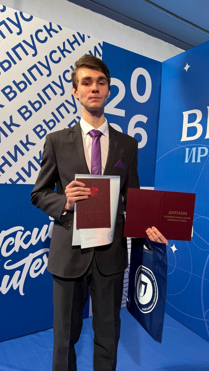 Диплом с отличием получил Андрей Семенов. С детства он увлекался авиамоделизмом, поэтому без сомнений выбрал специализацию «самолетостроение». Во время учебы Андрей проходил практику на Иркутском авиационном заводе, что позволило ему применять знания на практике и получить ценный опыт. В политехе он не только значительно расширил свой кругозор, но и познакомился с интересными людьми, что сделало его путь к выпуску особенным и насыщенным.