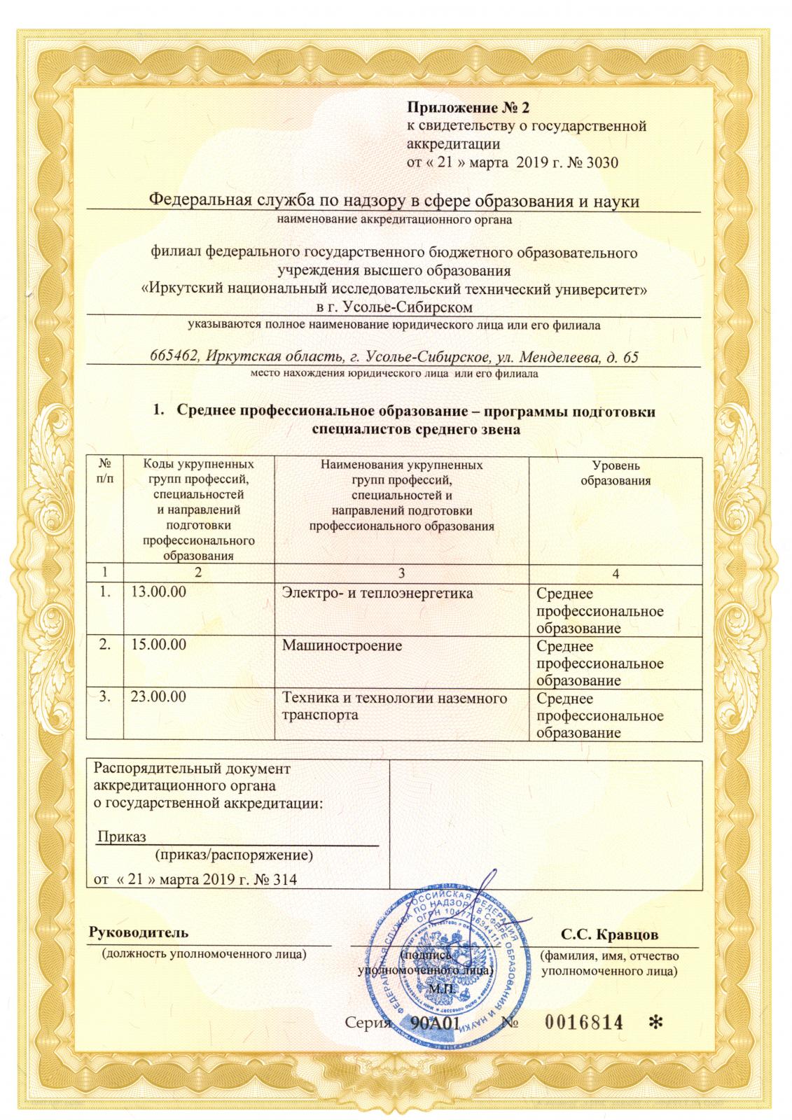- Приказ Федеральной службы по надзору в сфере образования и науки №72 от 31.01.2014 О государственной аккредитации образовательной деятельности федерального государственного бюджетного образовательного учреждения высшего профессионального образования "Иркутский государственный технический университет"