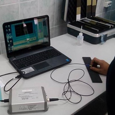 Используется для неразрушающего контроля деталей из композиционных материалов. Прибор позволяет определять границы повреждения (расслоения или непроклея) и устанавливать глубину дефекта с точностью до слоя. Параметр чувствительности дает возможность детекции расслоений после первого или второго слоя, так как именно в этой области чаще всего возникает повреждение целостности композитного материала после удара. Разрешение сигнала на экране ноутбука обеспечивает проведение анализа на месте эксплуатации. В комплекте имеются два ультразвуковых датчика работающих на частоте 10 МГц диаметром 6,35 мм и 9,5 мм.