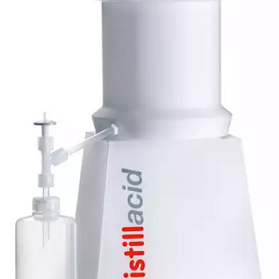 Система предназначена для получения ультрачистых кислот дистилляцией при температуре ниже температуры кипения. Установка изготовлена только из кислотоустойчивых полимеров.